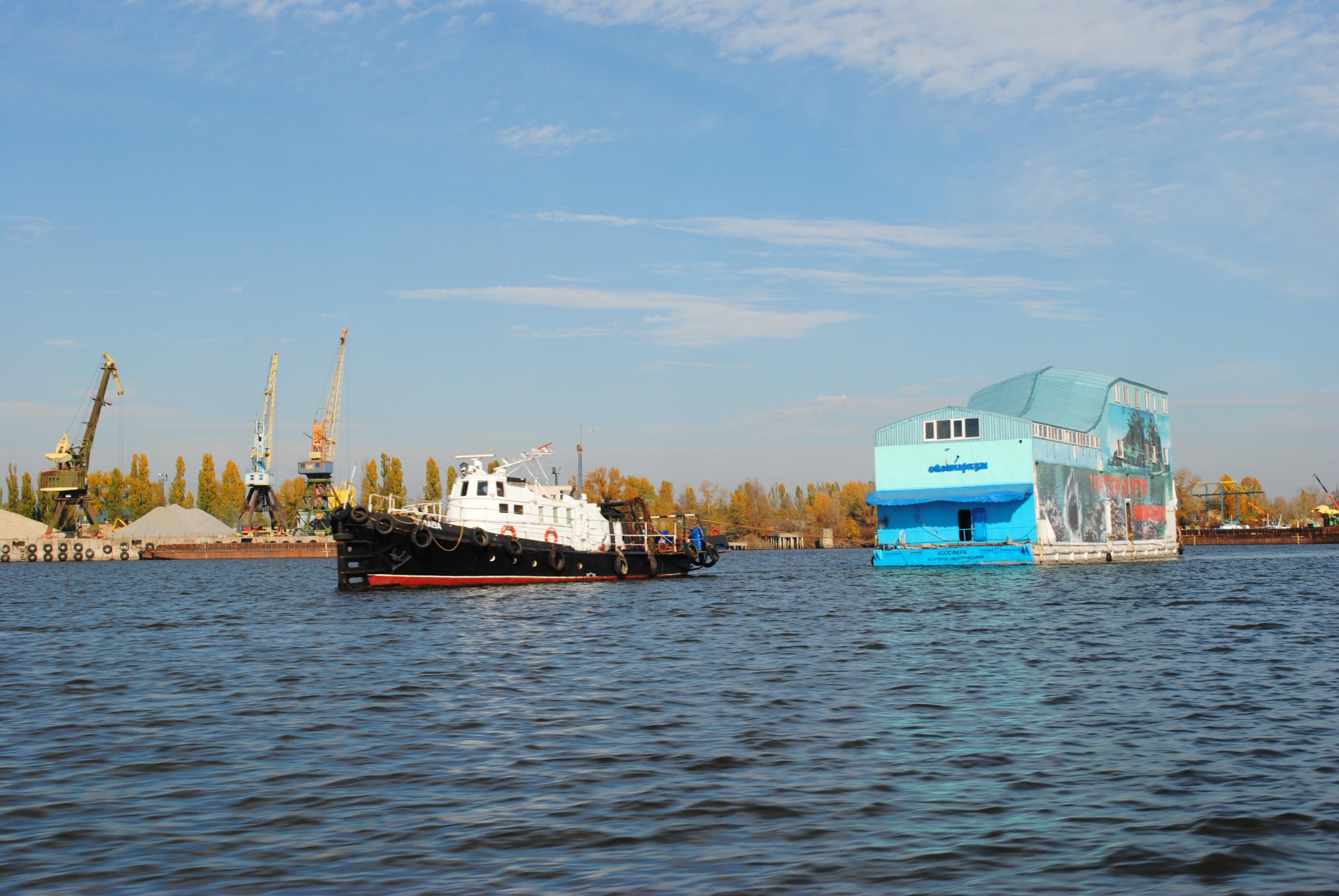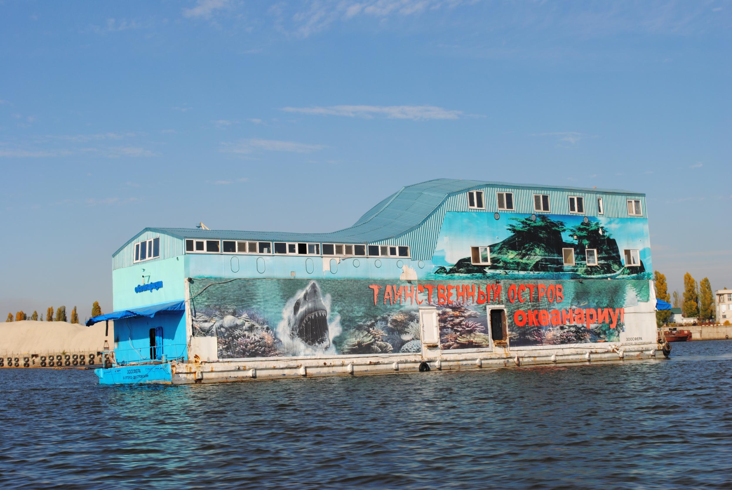 Вот такой передвижной океанариум был замечен на р.Днепр в районе г.Кременчуг,стоит на речном вокзале,вчера были дети на экскурсии-очень понравилось