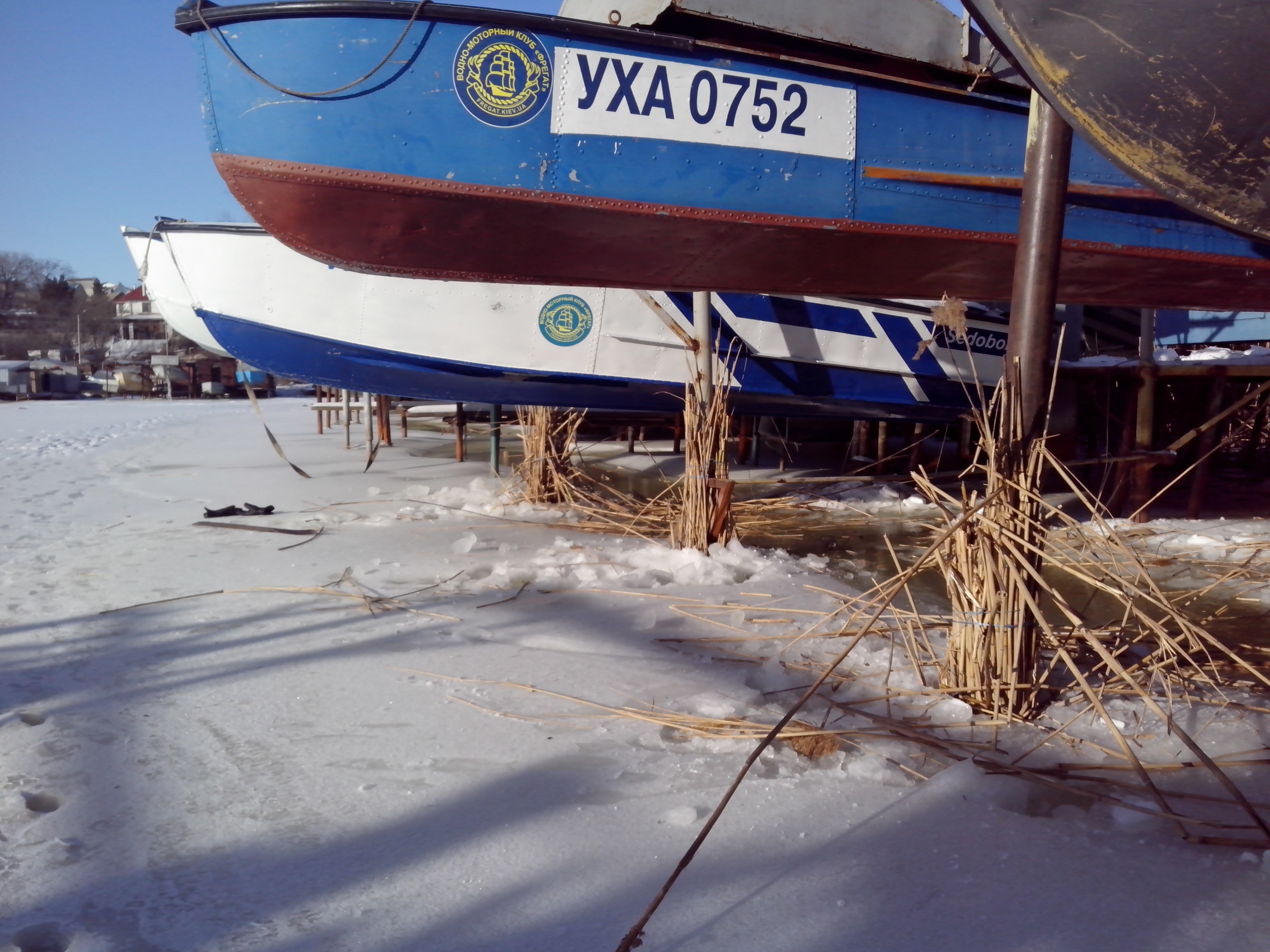 Вчера с братухой (Leshiy72) cделали вылазку на причал. Братуха камыш обкосил вокруг сейфов, а я лунки вокруг стоек долбал и обвязывал. Лед бил обычным ломом, т.к. пешня с батей пошла на рыбалку. Одна лунка занимала до 10 мин. Вот результат.
