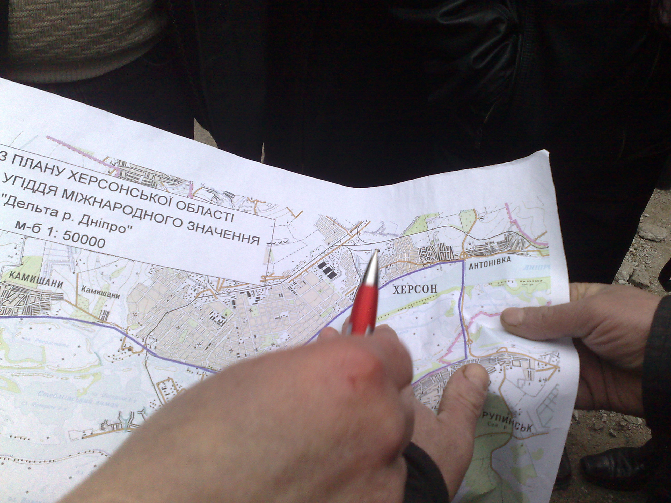 Облгосадминистрацию представлял советник губернатора по транспортным вопросам Виктор Бубликов, присутствовали также руководители ООО «Херсонский оптовый рынок» и проектанты тернминала. Заседание, по задумке его инициаторов, должно было пройти в режиме «одобрямса». И это при том, что при строительстве терминала будут уничтожены 180 га плавней, лодочный причал №15 и другие объекты.