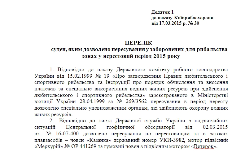 Помним, что ЗА пределами нерестилищ (указанных в Додатках) ходить плав средствам можно.