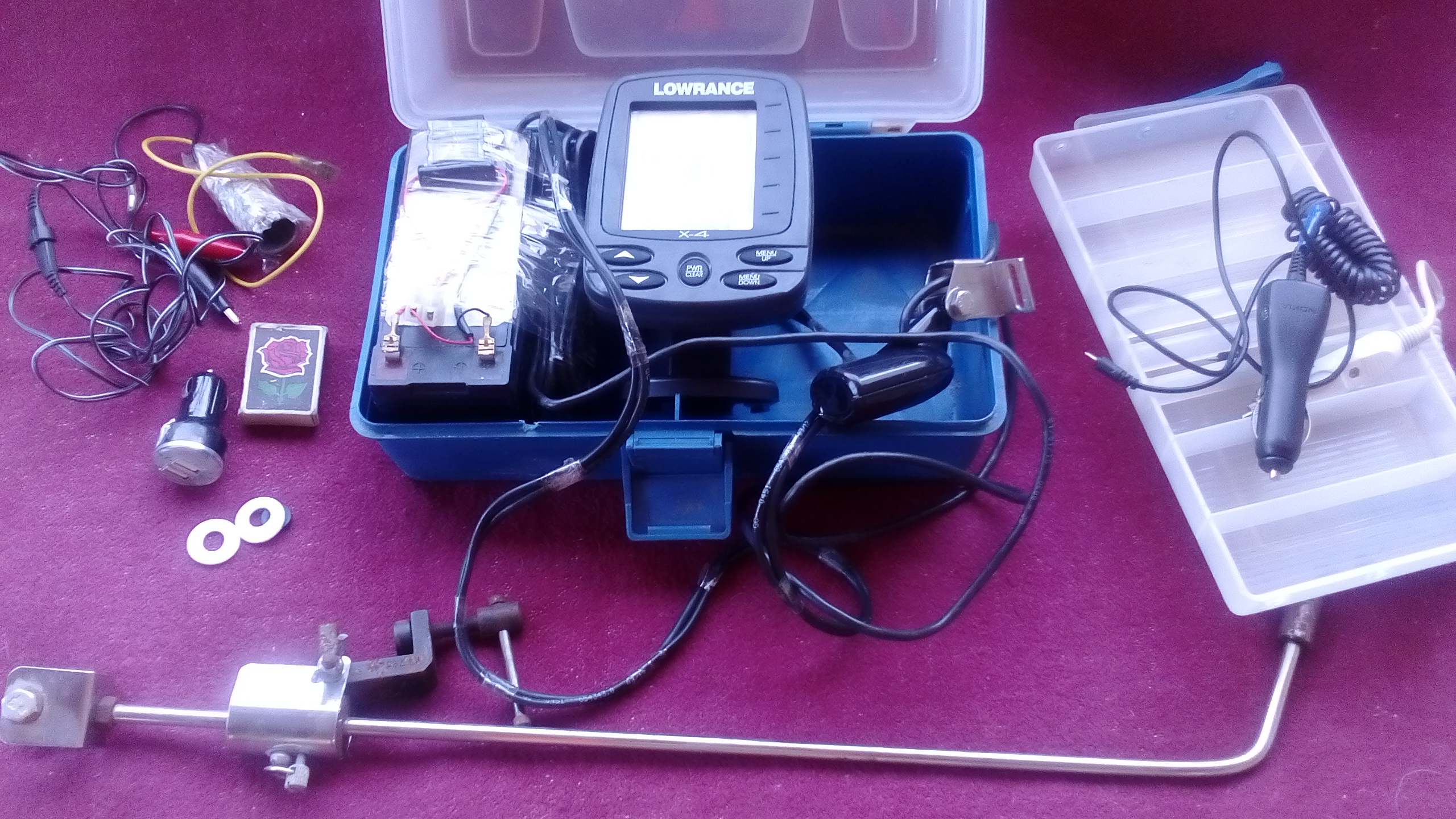 Комплект: эхолот, аккумулятор 7 ач, бокс, струбцина.