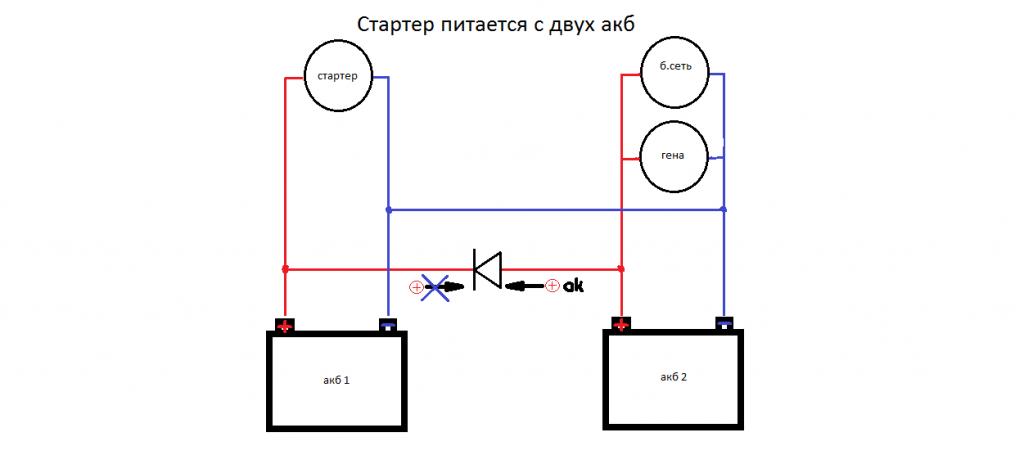 Я перерыл довольно много по этому поводу, лично для себя сделал вывод - два АКБ, один для стартера, второй для доп.оборудования. Реализуется это через мощный диод, лучше сварочный. Получим в момент работы мотора зарядку двух АКБ, на простое питание борт.сети от первого, а на стартер от второго.