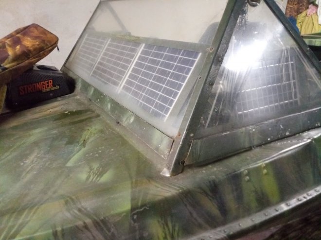 От сети я могу зарядить только до выезда на рыбалку. Панели и были куплены, чтобы заряжать прохудившиеся акб на второй день рыбалки, после ночевки в лодке. Панели места много не занимают, так как выставлять планирую только в задней части подиума лодки. Сам ловлю всегда спереди, так что задняя часть лодки никогда не используется