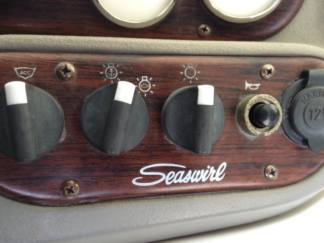 Рассказываю слева направо. Первый выключатель это замок зажигания, Второй это бловер или по нашему вентиляция моторного либо другого закрытого отсека. третий это помпа принудиловка. Четвёртый, которого нет чпстно говоря не знаю, никогда не видел таких обозначений, но судя по картинке, отвечает за отключение электрики двигла. Пятый (первый на следующей фотке) -включеник кондиционера в каюте. Пятый - ходовые и стояночные огни (должен быть трёхпозиционным) Шестой - освещение где либо в салонею Ну и последний это сигнал.