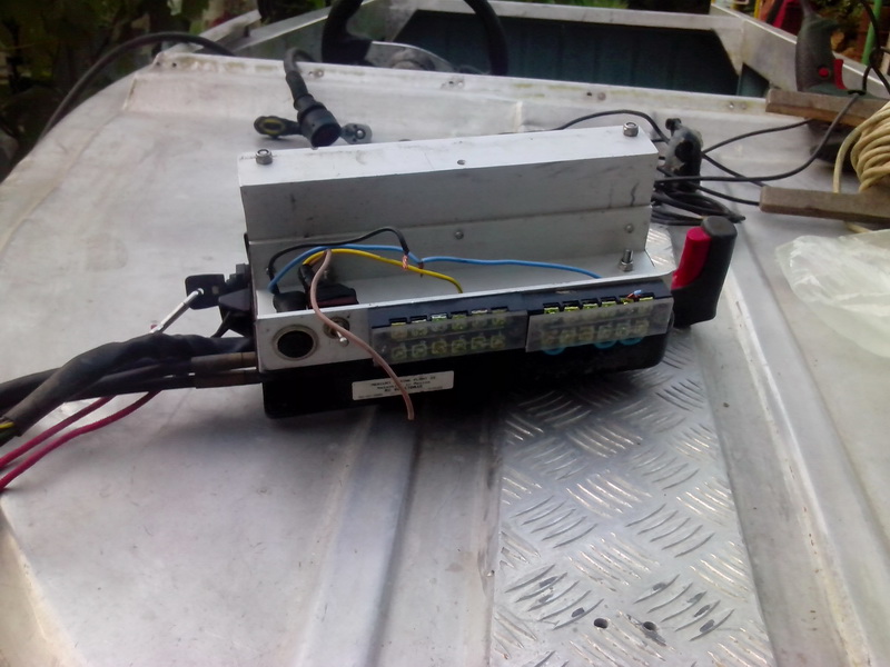 Снял коммандер с кронштейном под него, На кронштейне снизу крепятся клеммные колодки, кнопка дистанционного включения/выключения прерывателя массы, и тумблер трюмной помпы. Вместо тумблера лучше кнопки или что бы тумблер был не фиксирующийся. Т.к. с фиксирующимся можно забыть про то что помпа принудительно включена и спалить ее когда она выкачает всю воду.