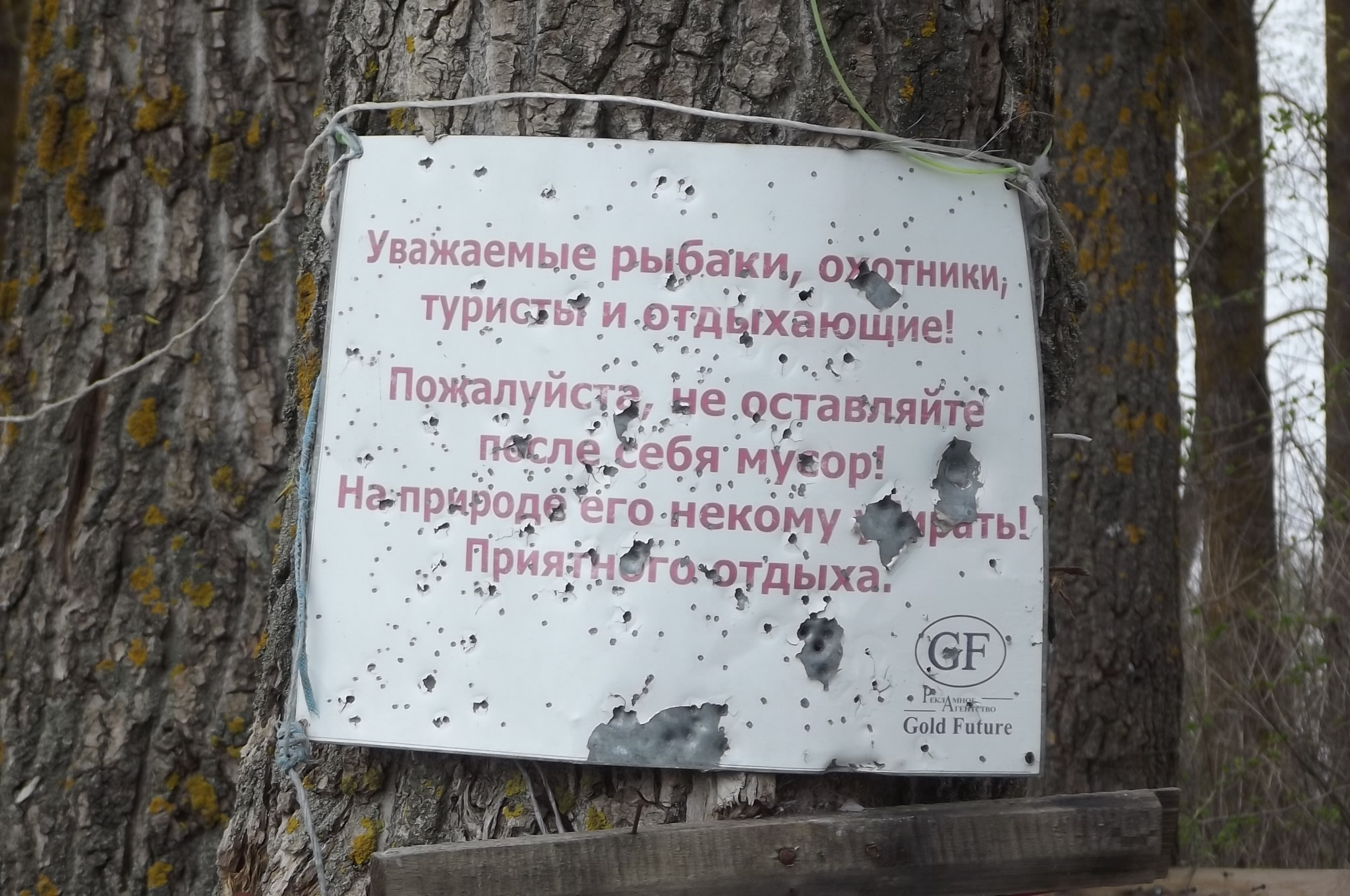 До этой таблички была другая. Год продержалась. Потом нашёл в кустах только плёнку от железа отодранную.