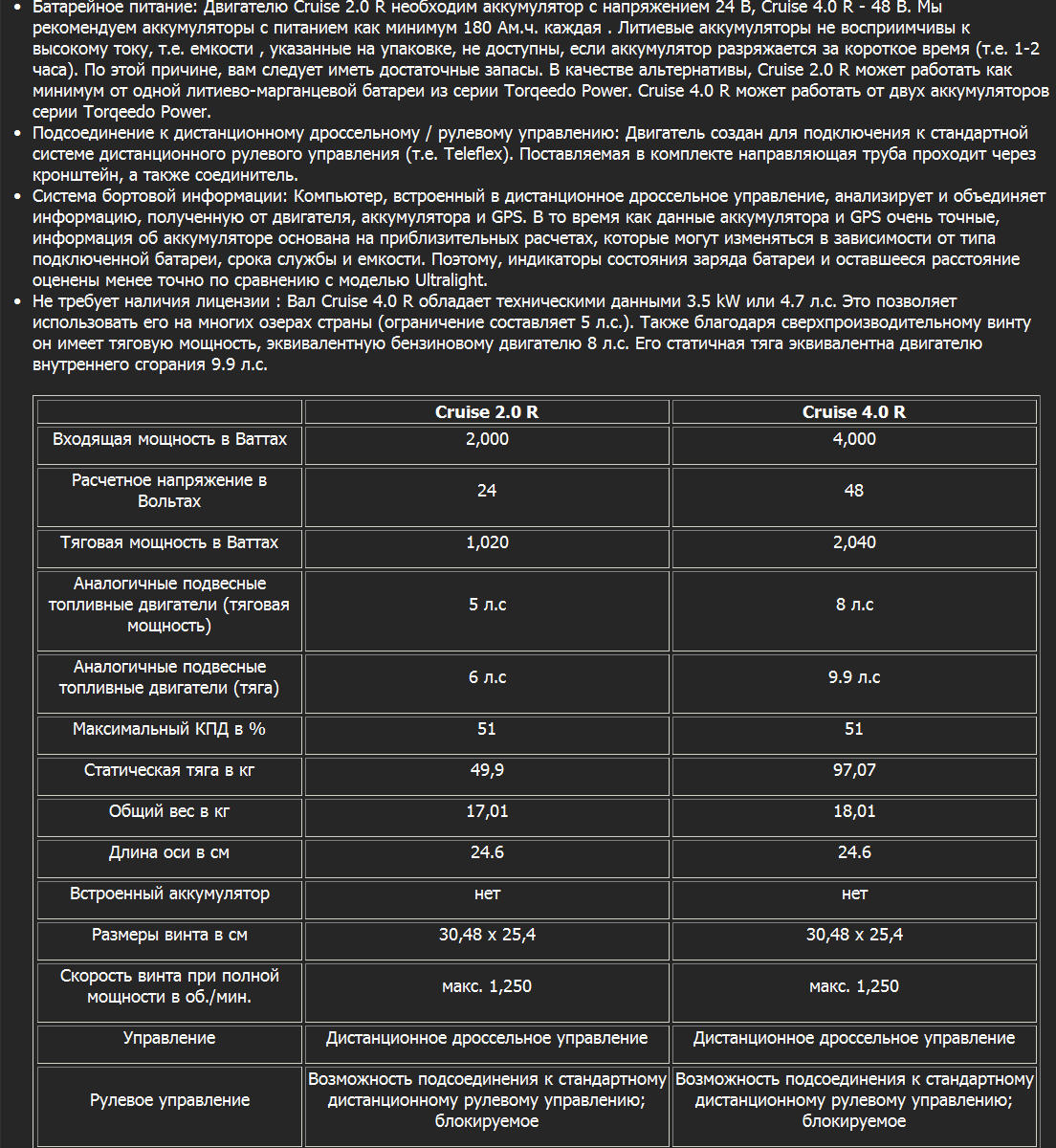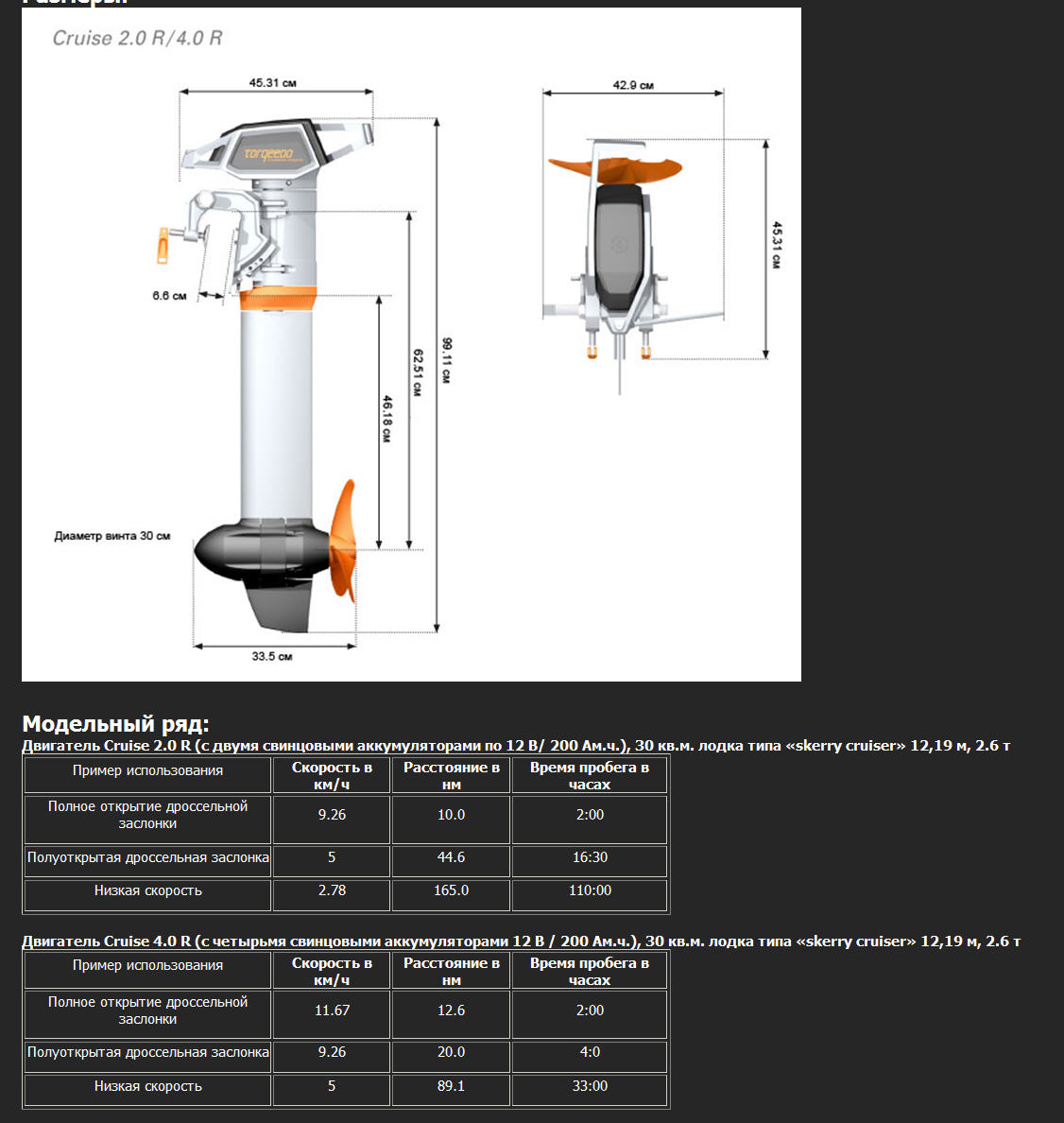 изначально была лодка Романтика 2 , люминий 60кг весу + 2 тела на борту мах скорость 9-10км\час потом сменил лодку на сильвер фокс , люминий 500кг весу + 2 тела на борту мотор тот же мах скорость 4 - 4.5 км\час сейчас опять сменил лодку Магнум , снаряженный 1500кг даже пробовать не буду .... но возить на транце придётся ... у нас запрет на бензиновые моторы в весенний и осенний периоды Но если захочется всётаки походить на электромоторе придется брать помощнее засматриваюсь на TORQEEDO Cruise 2.0 R но немцы совсем оборзели - ценник в 2 раза дороже бензинки .... а про аккумулятор штатный литевый - вообще промолчу .... Востаннє редагував electric123: 12.05.2013 о 00:00. |