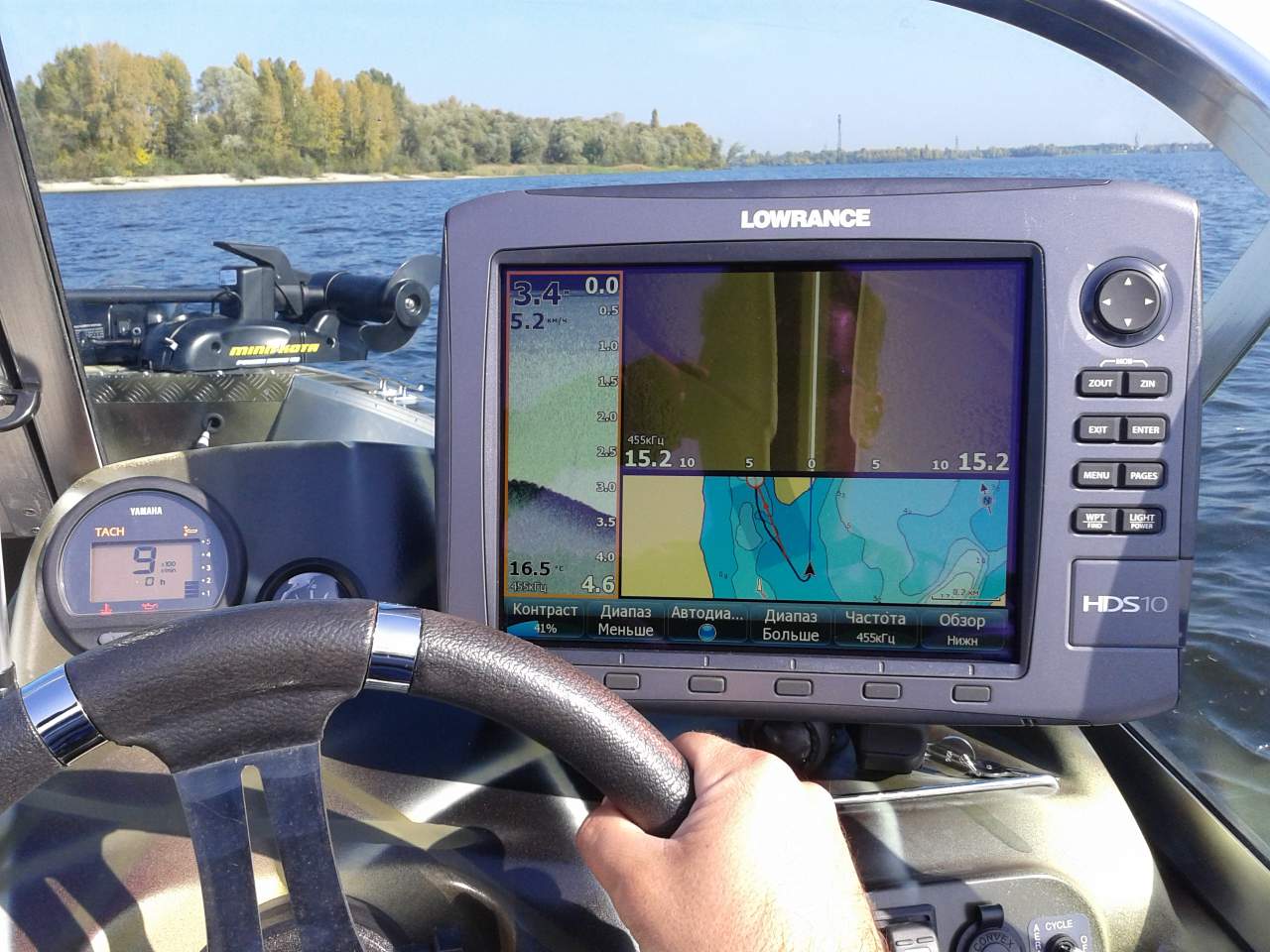 В вашей ситуации эхолот может быть полезен чтобы на мель не налететь. И то при установке датчика и сравнительно небольшой скорости движения.