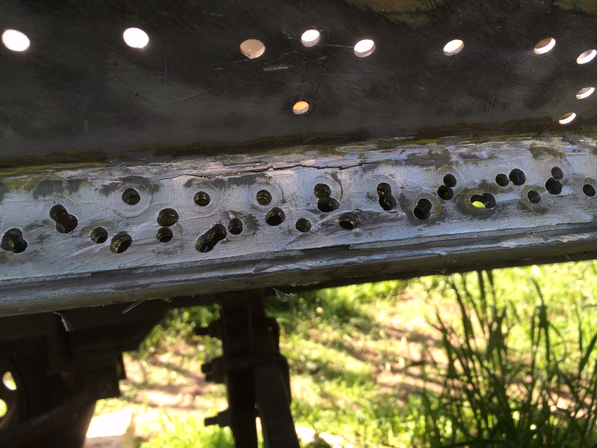 - латку на шпангоуте клепать желательно 2-м швом в шахматном порядке. - на днищевой латке вижу так сказать перебитые замыкающие головки - не надо так сильно расклепывать.