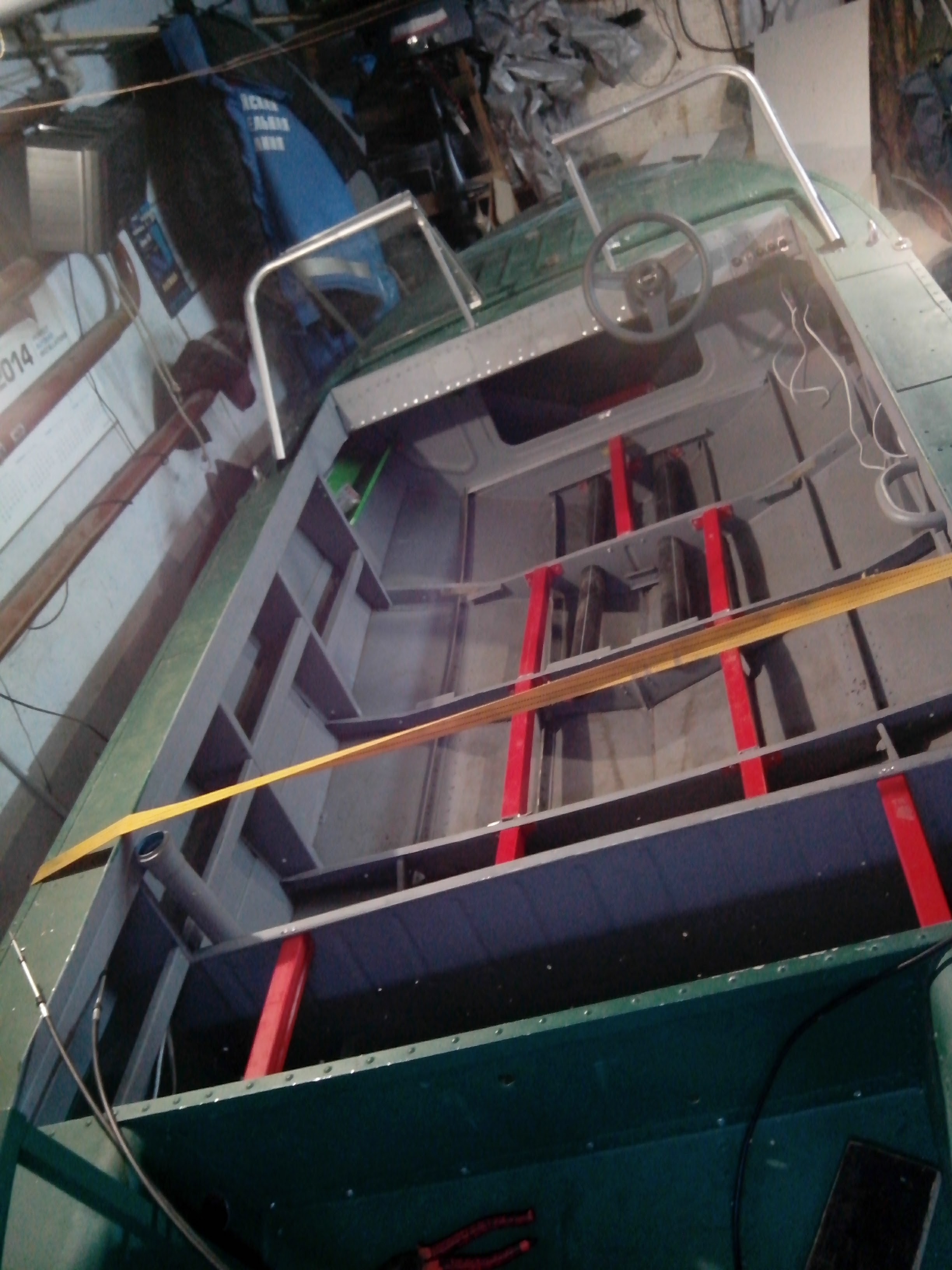 Несколько фото для наглядности. Буду добавлять еще усилителей вдоль бортов и в носу. Фанера прогибается когда куски не подперты по периметру |
