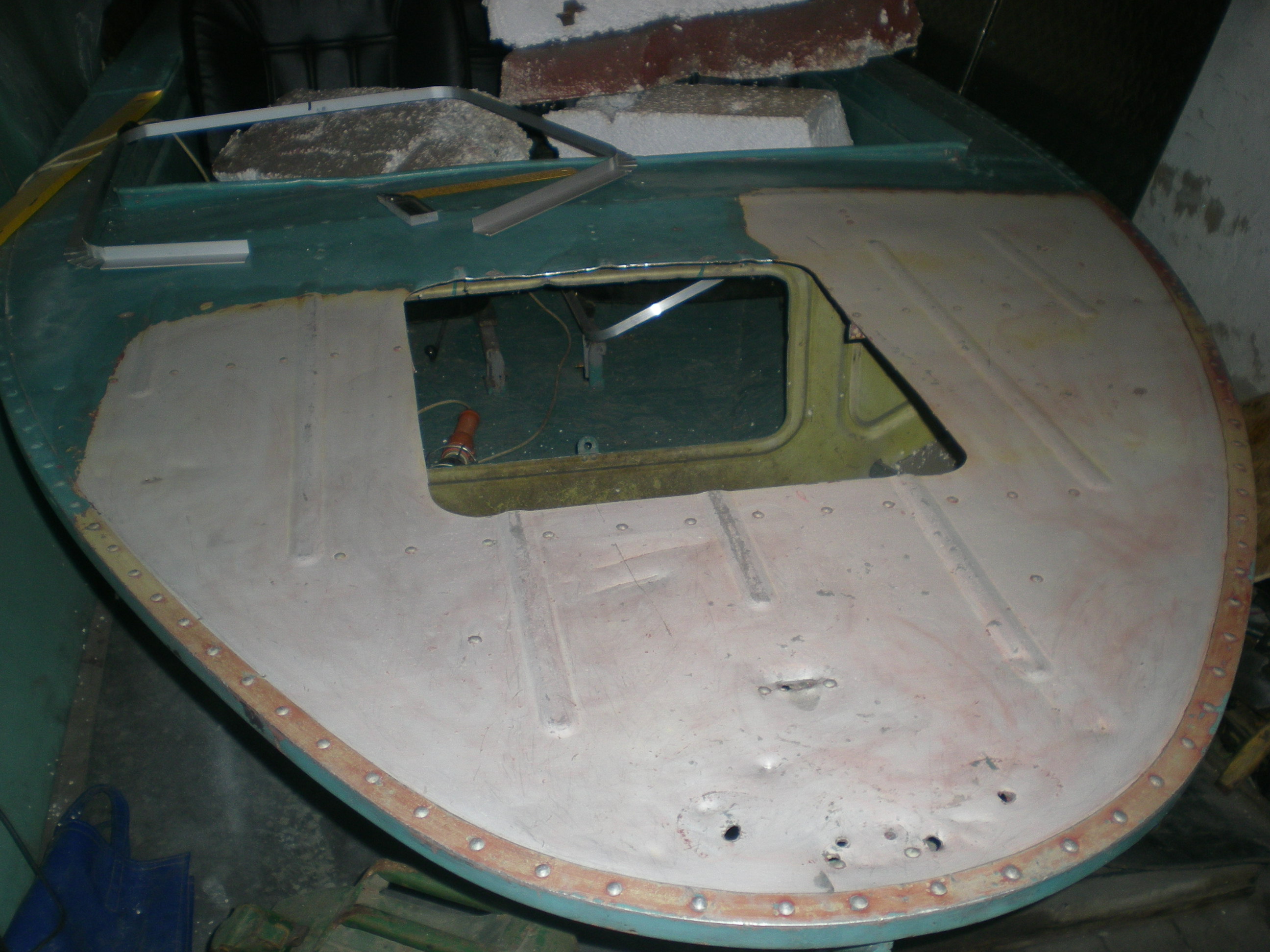 Пришлось высверливать отверстие побольше и подбирать 8мм заклепку. 2 рядом для верности тоже поменяли на 5мм. Ограмное спасибо Максу и Попову за подмогу. Заодно дно химией почухали от остатков водорослей.
