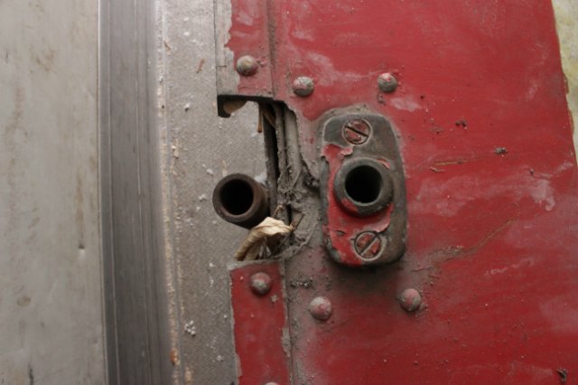 Старые выбили, сразу стала понятна причина. Вытяжную заклепку пытались всверлить рядом со старой.