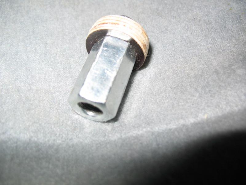 Согнул титановый пруток,предварительно нагрев место сгиба на газу, за пруток отдельное спасибо Shel-у. Купил в магазине метизов удлиненную гайку (на гайке сделал запилы на фотке их нет), вырезал из фанеры затычку, и этот бутерброд (удлиненная гайка, фанерная затычка прикреплена к ней болтом М8) вклеил на эпоксдку в рукоять от поломанного мощного китайского спиннинга, предварительно заполнив резьбовую часть гайки литолом.