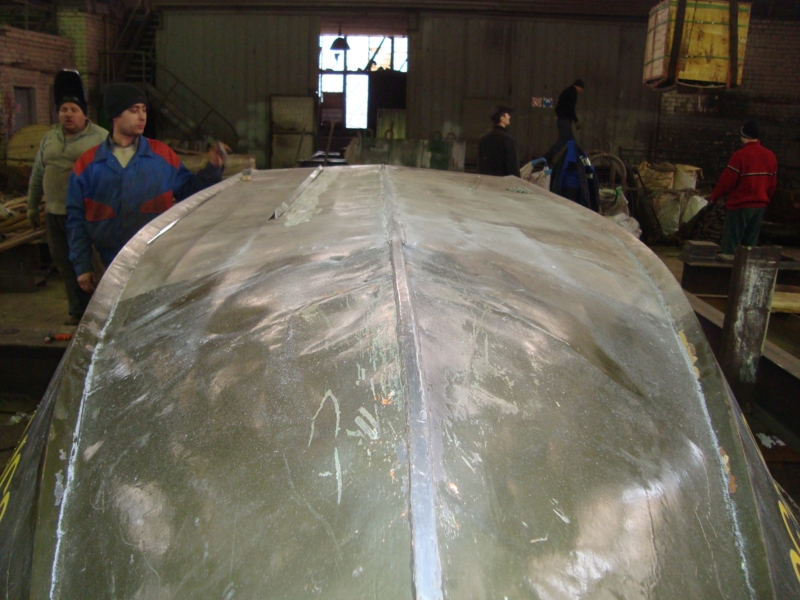 Наконец то лёт тронулся сегодня началась приварка реданов.В пятницу будет надеюсь готова. Единственный нюанс хотел реданы равномерно распределить от центра через 23 сантиметра но при пробной сварке выяснилось что днище в этом месте без усилителя вздувается пузырём, сегодня решил запускать не по размерам а по усилителям.