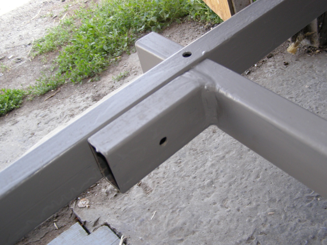Стыковка профильной трубы выполнена по столярному принципу - "зарезка в полтолщины". Для бОльшей надежности и избежания деформации место соединений ещё стягивается болтами. Ачтобы при стягивании сама трубка не прогибалась в места соединений вырезаны "вкладыши" - забыл сфотать.