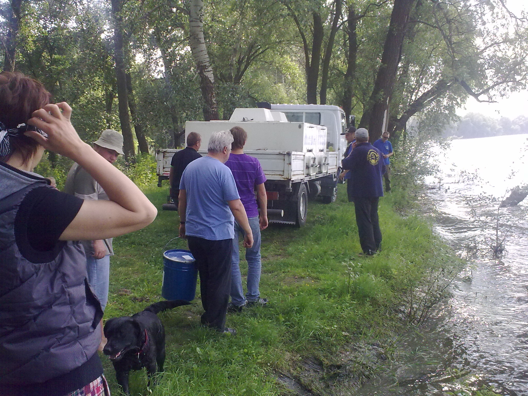 Вот и я вернулся с Десны. Зарыбление прошло действительно на высшем уровне. Правда не обошлось без маленького приключения - машина, которая привезла рыбу, после сброса рыбы зарылась НЕ ведущим передним правым колесом "по самые не балуйся.Ну провалился. Взялись за дело Фрегатовцы и .........