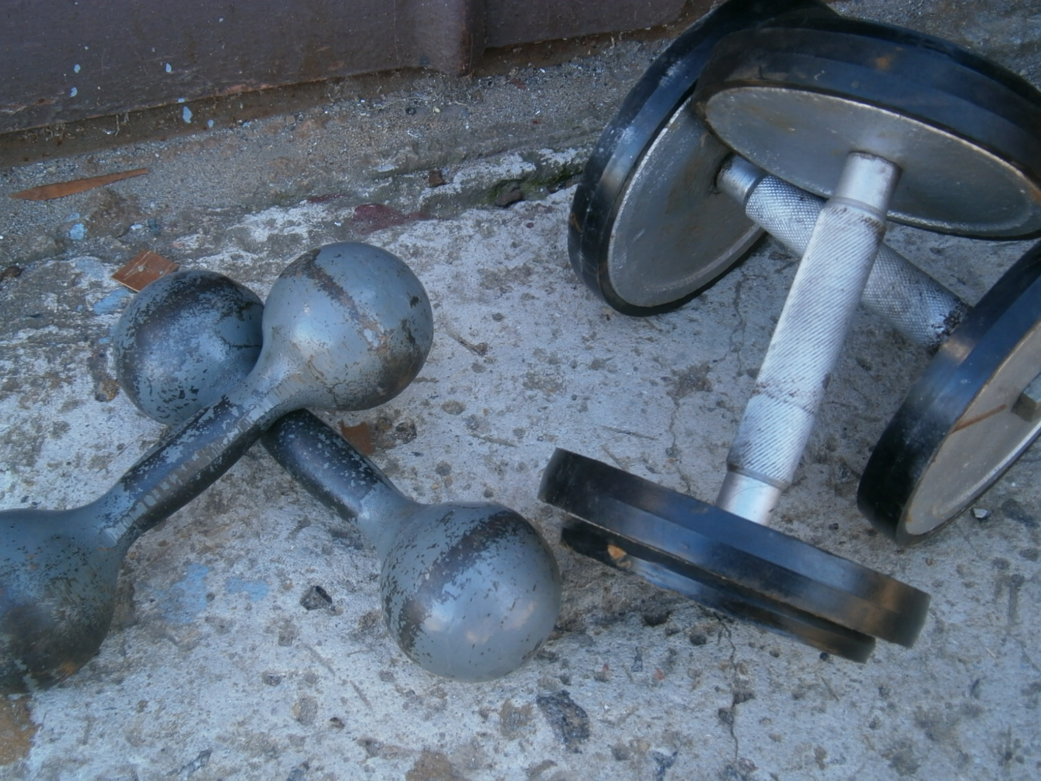Есть две гантели по 4 кг , если нужно отдам за 60 грн, и две гантели разборные обрезиненые по 7кг, которые легко трансформировать в штангу 14кг (скручиваеться через шпильку,250 за пару - скидка.