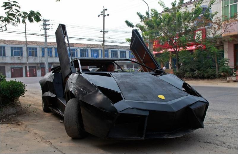 Китаец Ван Цзянь построил копию Lamborghini Reventon. На это ушел год работы и сумма около десяти тысяч долларов.