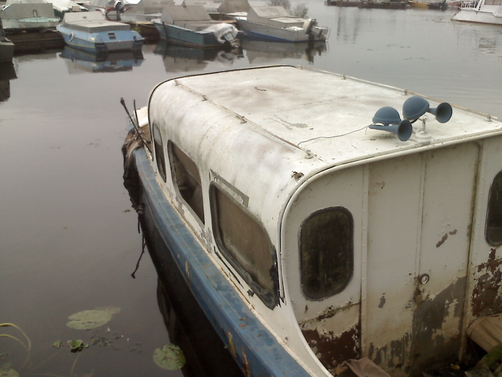 Нушо же.Вторая эпопея.Круг сужается.Осталось из всего два варианта.Тот что второй вариант.Хозяин сейчас за бугром.Тот что Григорий оказался просто хламом даже на суше.там смотреть не на что.Но вот появился вариант ещё.Корпус интересный .НО он был в воде.Из-за того что открыт был.Плюс снят был выпускной коллектор.А он тоже на резине был.И она просела и вода через выхлоп залила катер.Сегодня откачал.Сам корпус в принципе в хорошем состоянии даже после того что был в воде с весны.Но мотор песец ему и собственно всему что было под водой.Ценв таже.Но катероки сделан с толсого металла.И очень качественно. Цена таже 4000грн.Плюс Нач-РОП пообещал дать какие то похожие доки. Но блин при всём что катерок хороший.Мля мне места мало.Очень надеюсь на второй вариант.Что не загнёт цену.