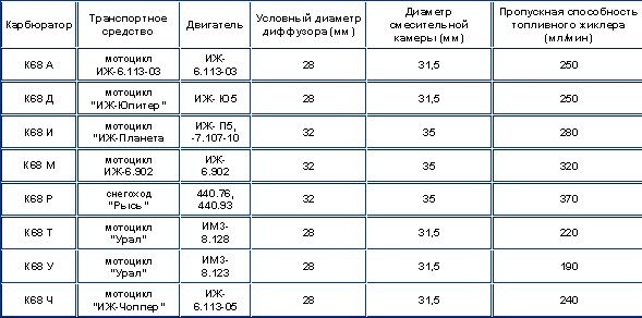 Идеальным решением является карб К68Р: Жиклёр и диаметр топливного канала "диаметр эмульсионной трубки"