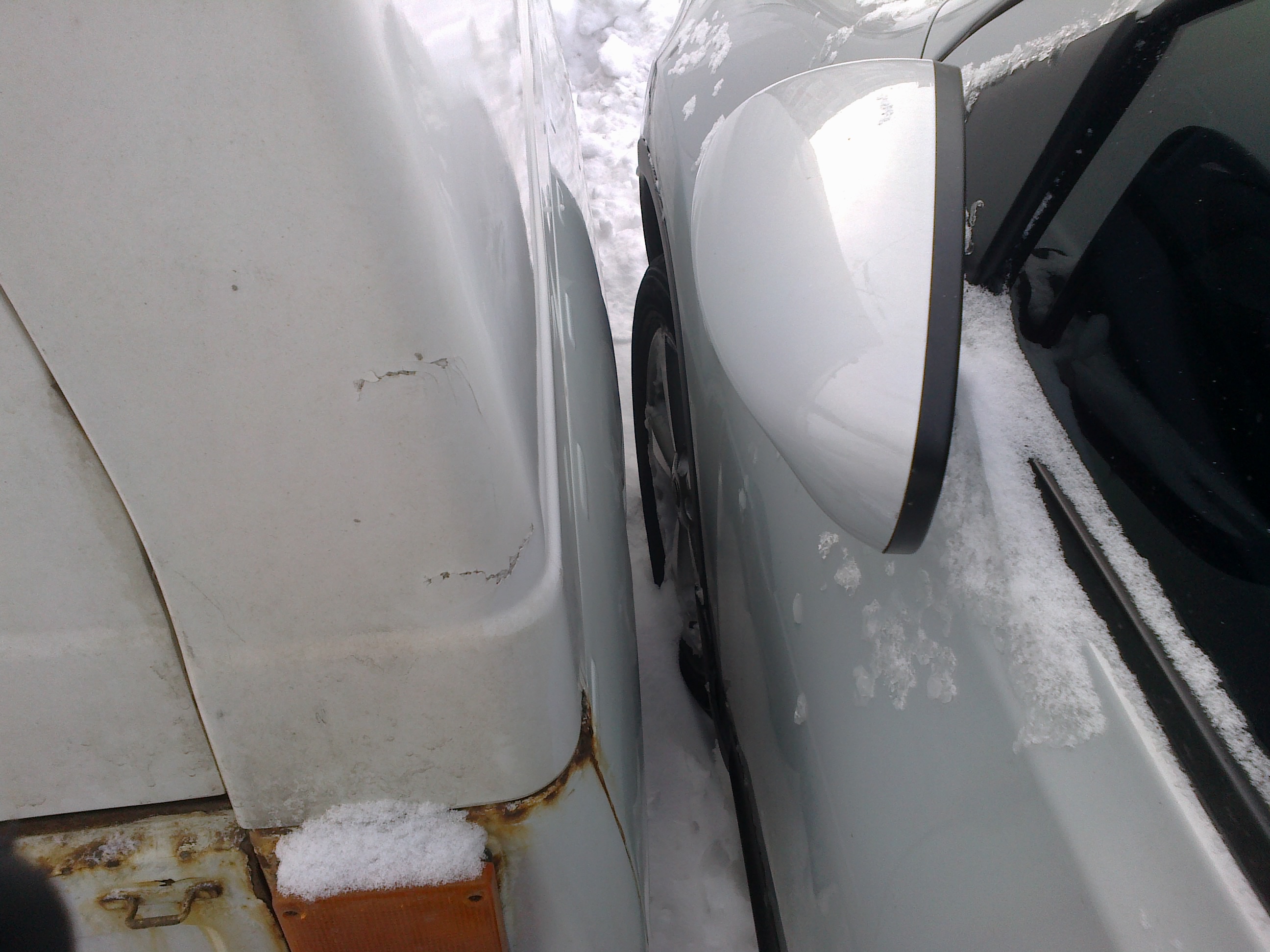 Чистил сегодня телефон, нашел фотки. Не знаю куда, наверное лучше в ахренеть. Это чудеса зимней парковки, ржавое тавро мое, а из за этого автомудака один день на работу пешком съездил