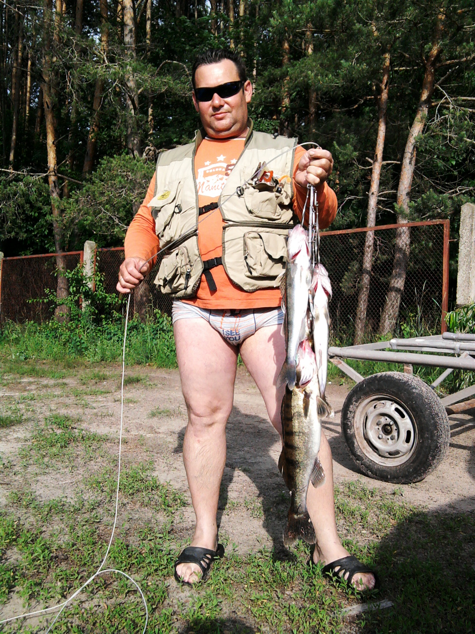 С утра сходил на рыбалочку, поймал с берега восемь берибельных судачков (как раз по длине коптилки 45 см).