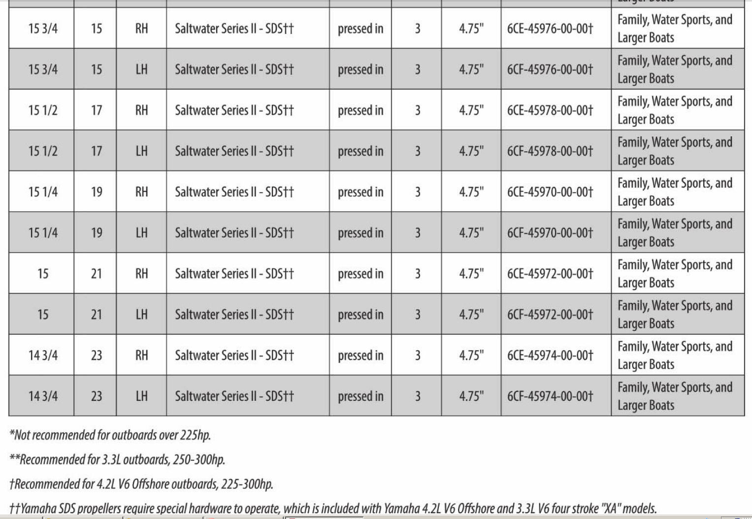 в приложениии рекомендуемые родные винты для мотора V6 4.2L