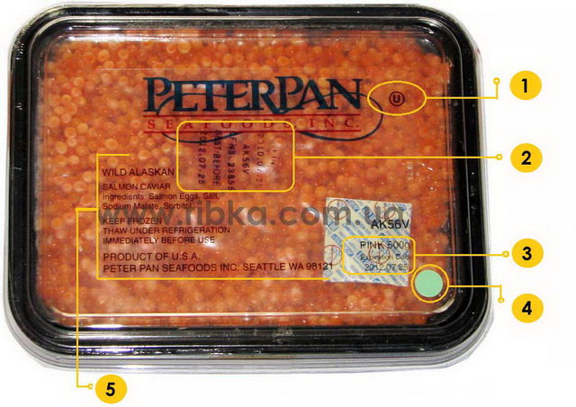 Надписи на упаковке икры Peter Pan.