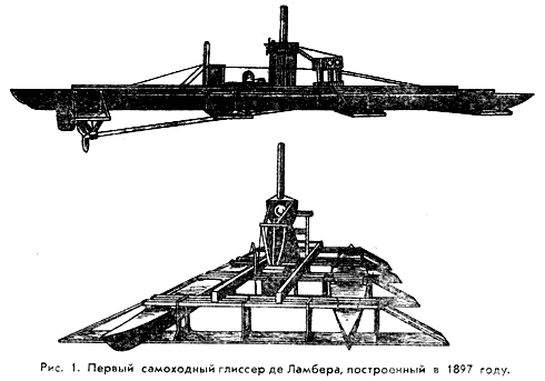 Прошло 13 лет, и в 1885 году попытку построить скользящее по воде судно, независимо от Рэмуса, на этот раз во Франции, предпринимает один из пионеров авиации, русский по происхождению, эмигрант маркиз де Ламбер. Во времена царизма не раз русскому человеку приходилось покидать родину, чтобы осуществить свое изобретение на чужбине.
