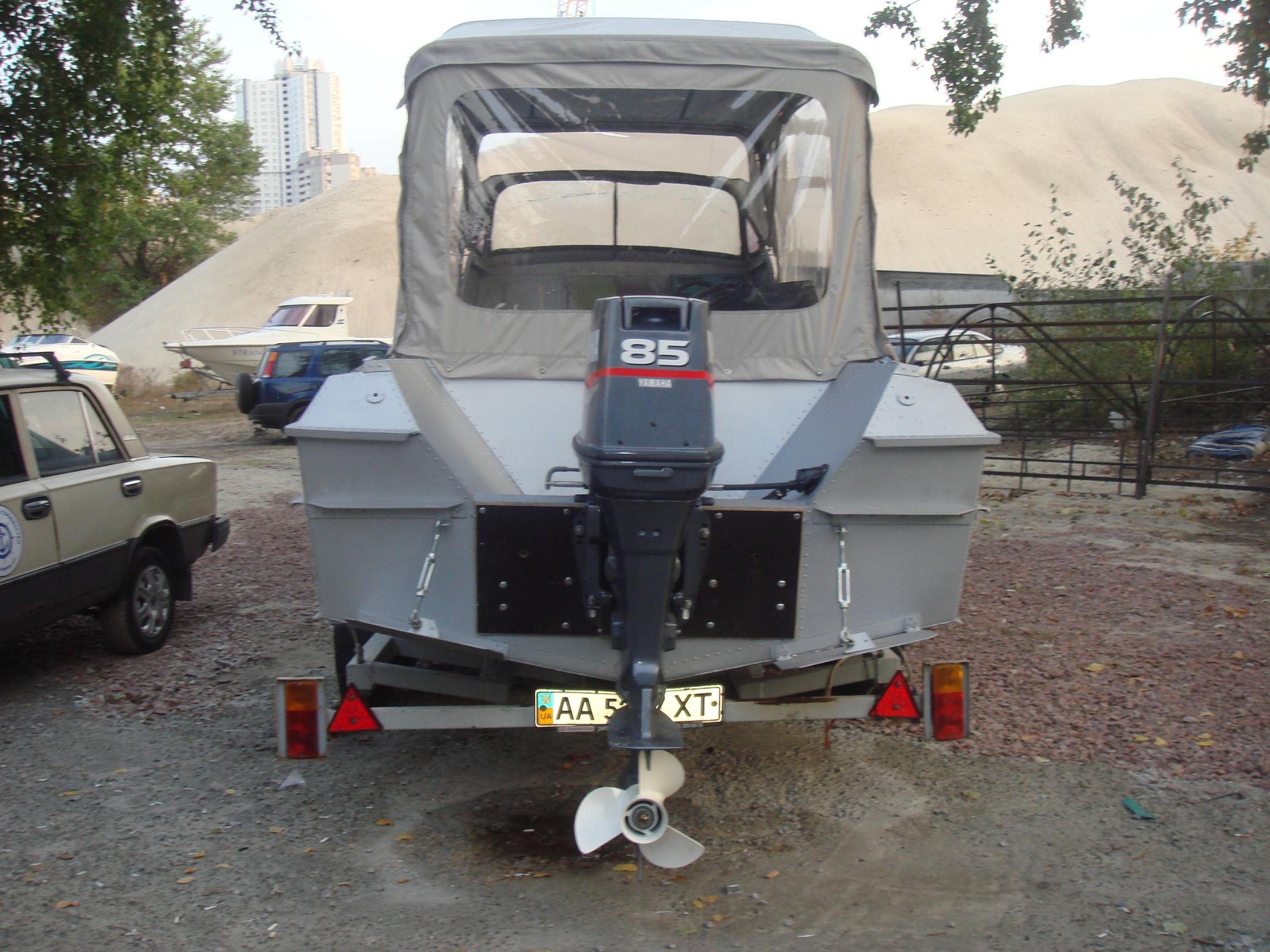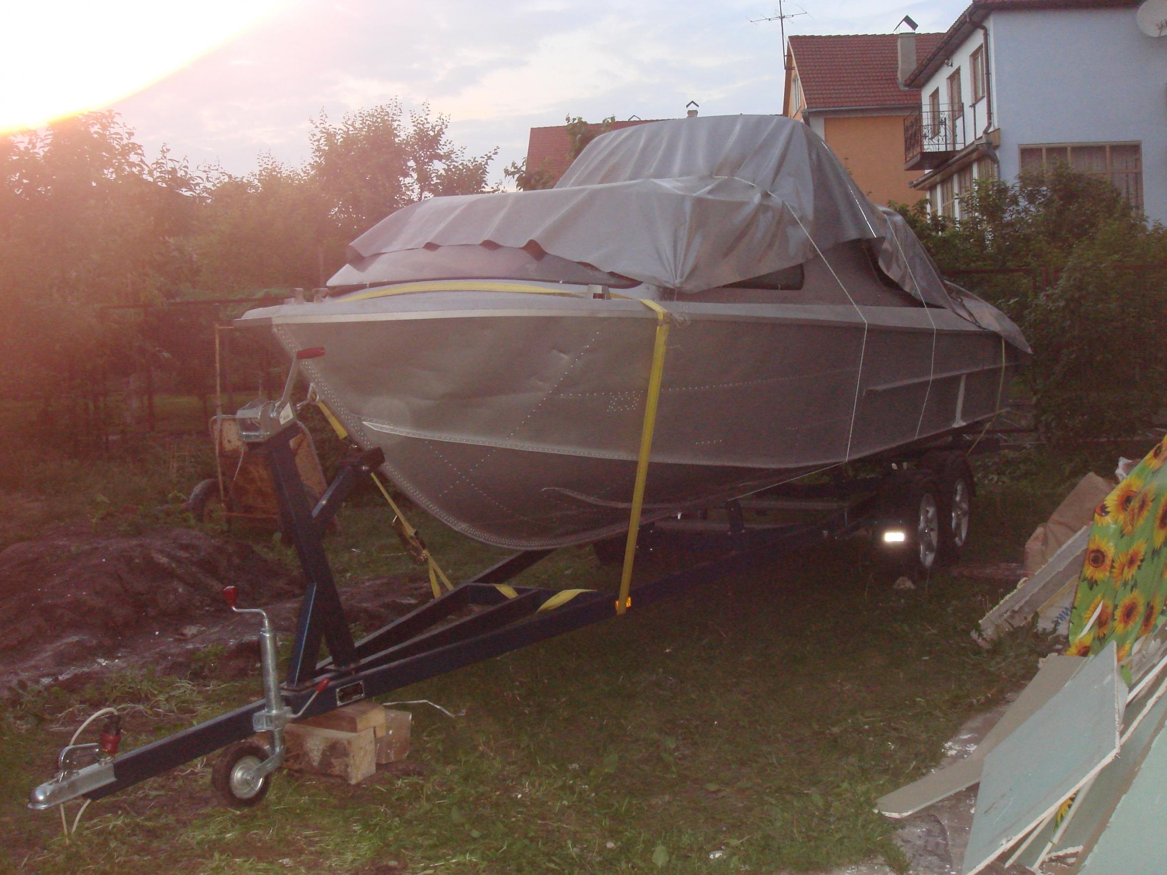 Сначала пользовался отдолженным двухосным лафетом из-под бая 6.3х2.5. Нормальная мобильность для таких размеров. Лафет рассчитан на вес 2т. и потому даже пустой очень тяжолый. Потом я в Вышгороде нашол производителя, который сделал мне то, что я хотел--бюджетный, двухосный, легкий, около 7 метров. Почему около, он не отрезал лишнее дышло см 50, сказал потом если надо отрежешь. Не собираюсь. На машине запаска, ну и в поворотах спокойнее. Сам по городу не таскал, использую специалиста, сам еду сзади т.к. шумахеры-стививандеры норвят обогнать и вскочить между машин, трел и лодку они замечают перед своим капотом.