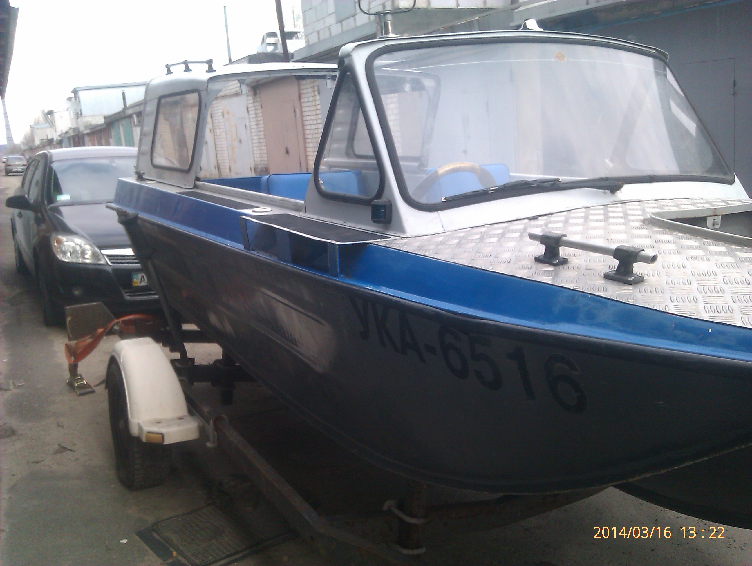 рулевое(руль,редуктор,трос),габаритные огни,лесенка для купания,транец усилен и поднят.Стекла все целые.Не течет.Тент.