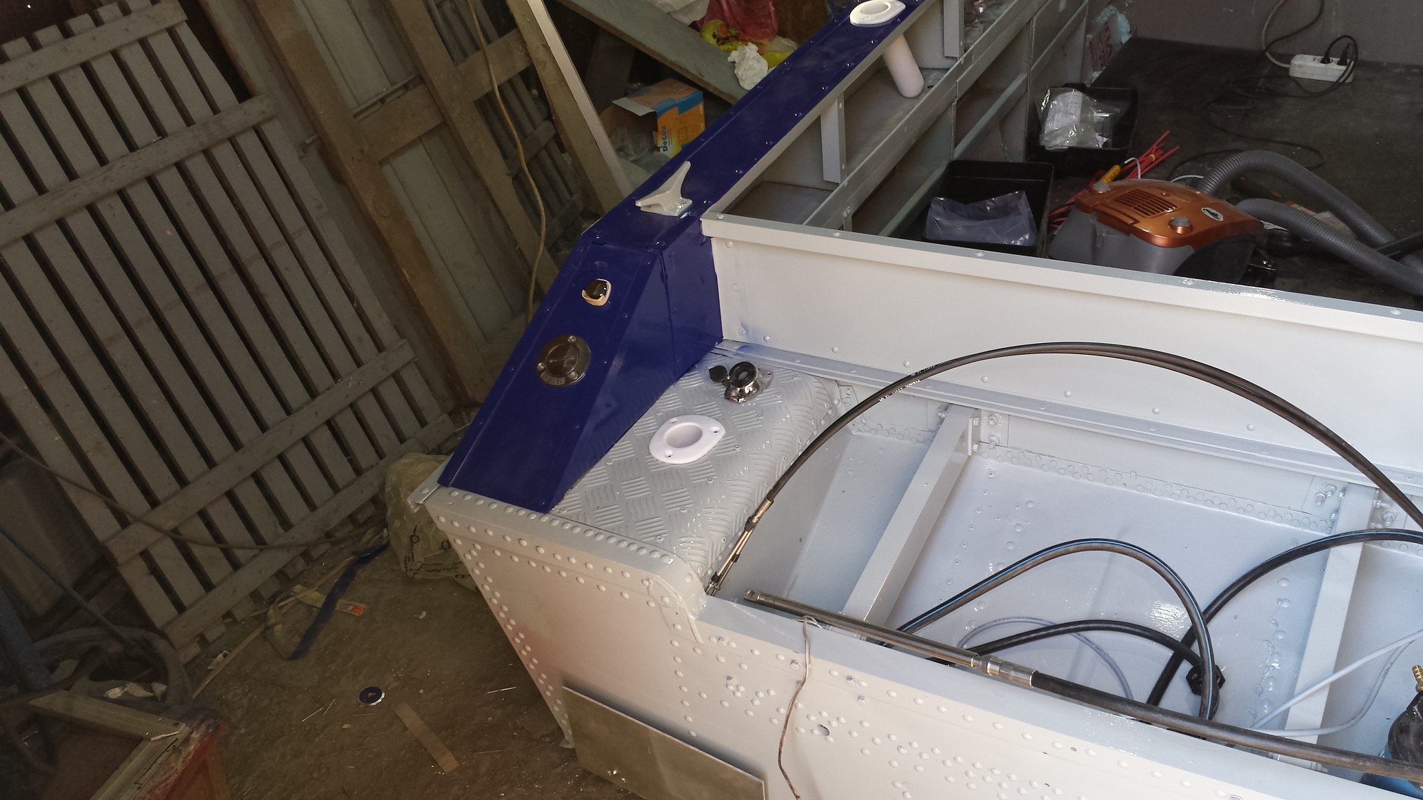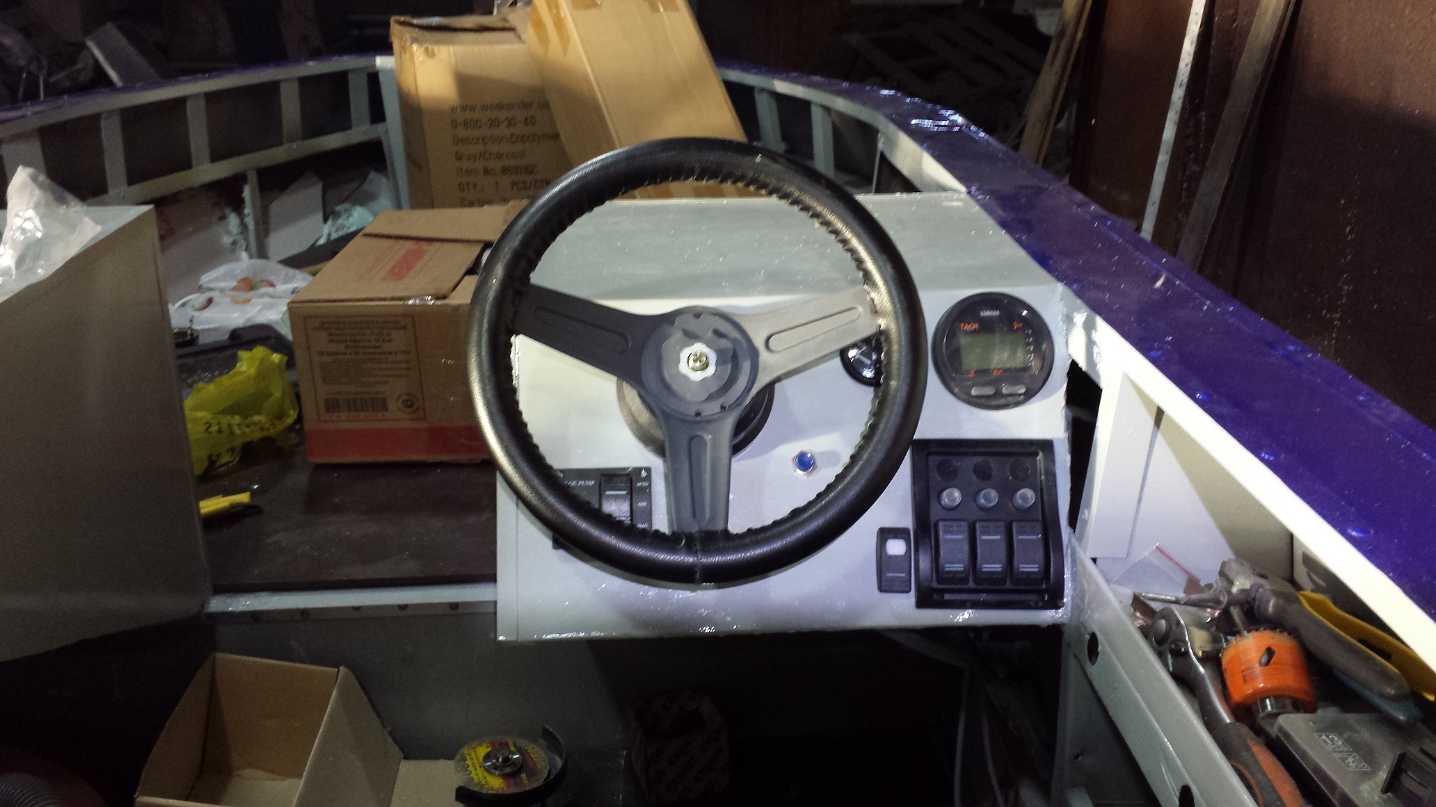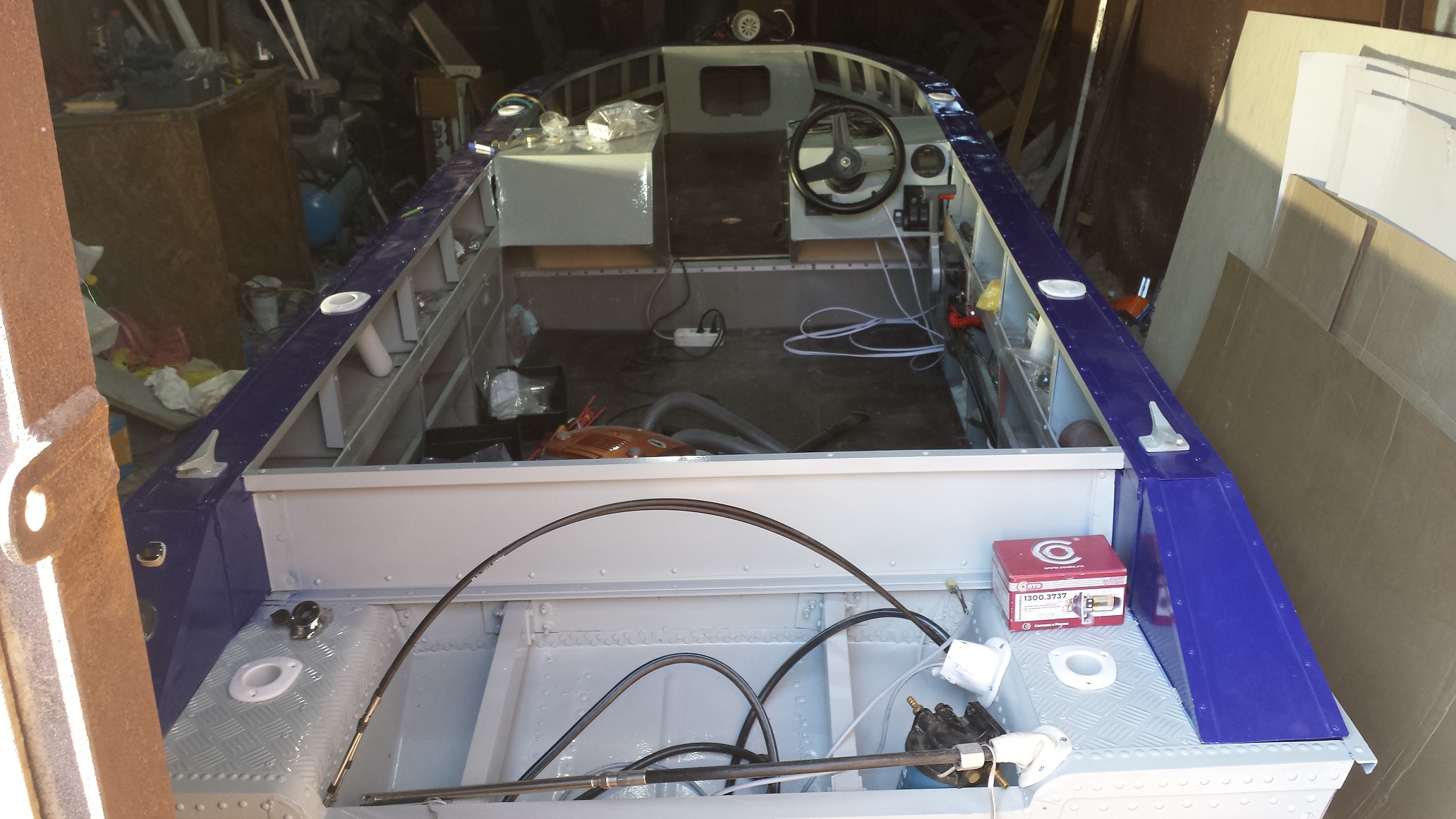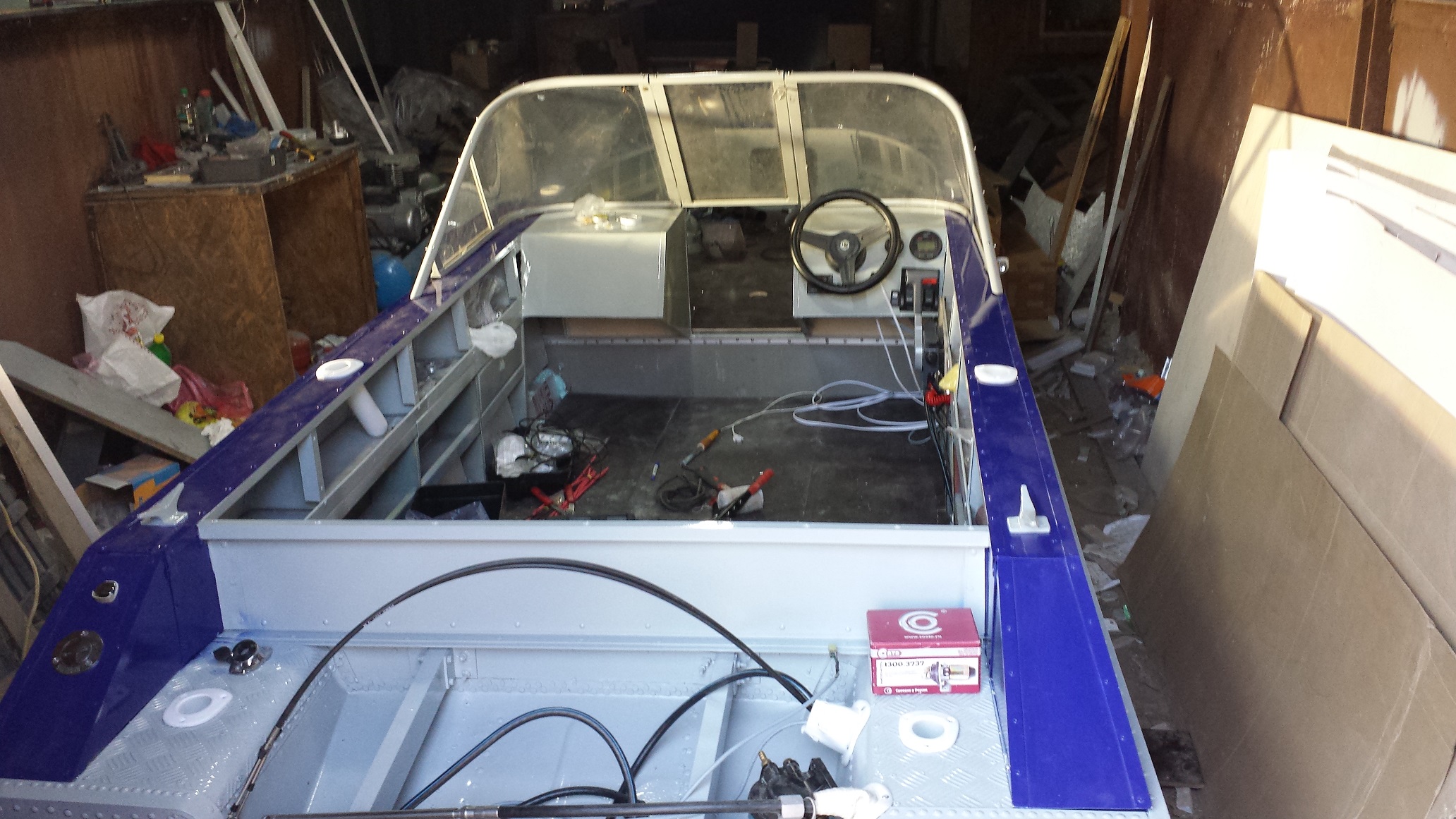 Сегодня весь день провел возле лодки. Настала пора сборки. Как по мне, это самое приятное в работе с лодкой. И так, за день установил спинингодержатели 6 шт, командер, проса, приборы, лебедку, носовой электромотор, стекло, протянул провода, закрепил пойолы, врезал заливную горловину и воздушку бака, установил габаритные огни и клотик. Еще пару дней повозиться и можно устанавливать мотор и НА ВОДУ!!!