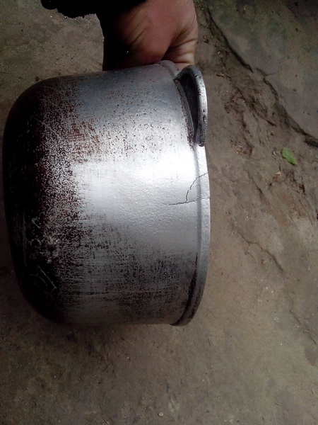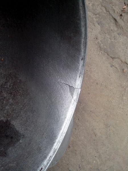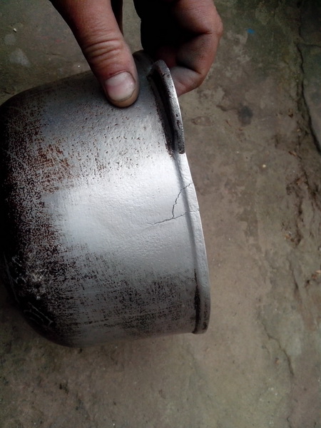 Как и что я бокопорил видно в хронологии фоток, вначале допустил ошибку, не прихватил концы трещены, начал идти от средины казана к концам и фрагмент отвалился... второй бок решил добавить при наплавке побольше тока, и когда уже оставалось наплавить 3-5мм наплавил шишак, пришлось срезать и наплавлять заново