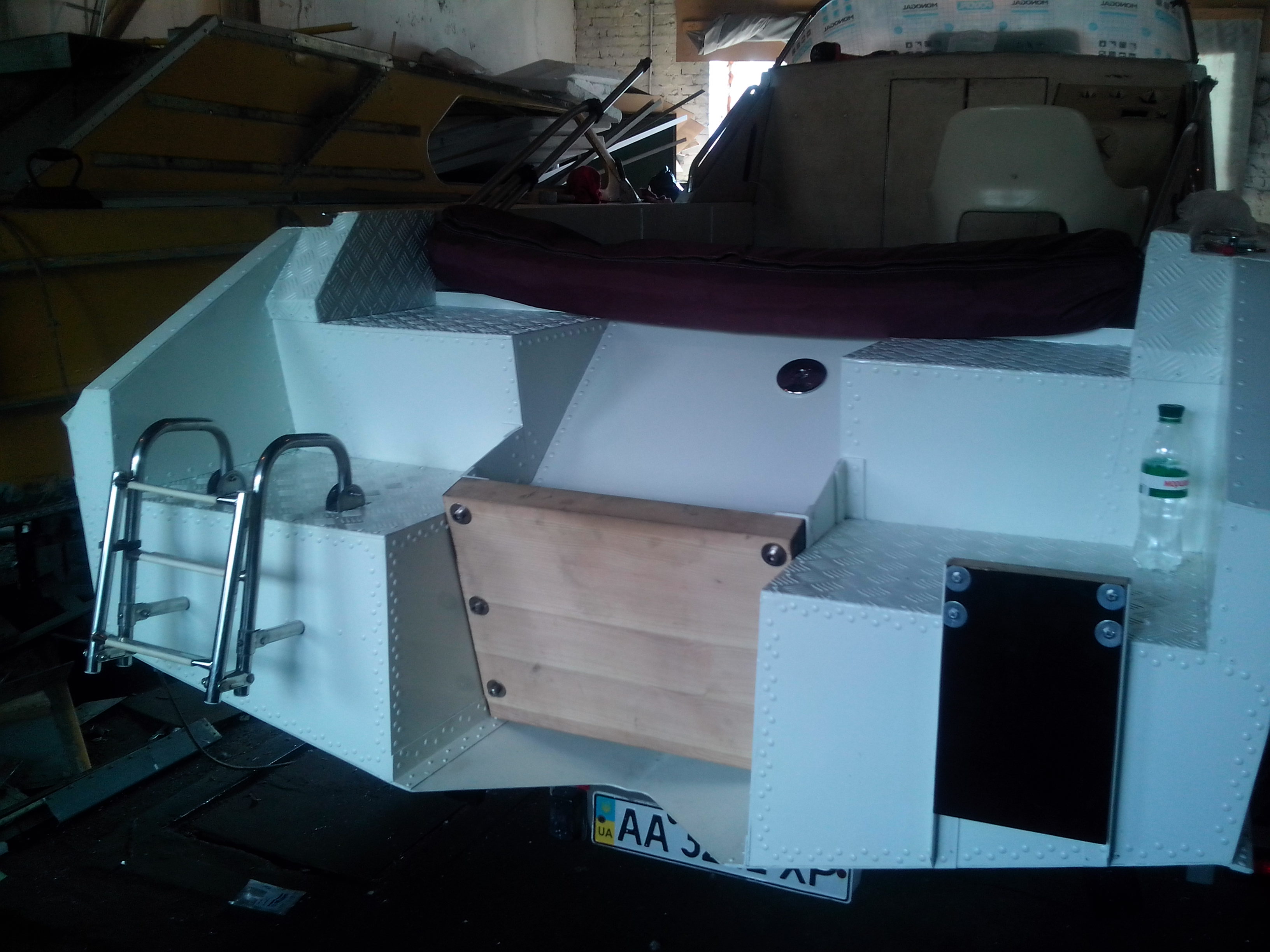 Результат: полностью усилен корпус, отсутствие течи (лодка прошла ходовые испытания в течении года), быстрый выход на глиссирования (за счет дополнительных спонсонов по 40 см выполняющих роль транцевых плит), удобство и комфортабельность от дополнительных спонсонов (купание, ловля...).