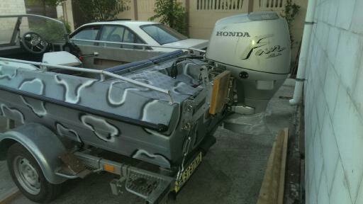 Вот тот же "Крым", только уже с транцем под 508ю ногу... Увеличен кокпит, добавлены карманы в бортах под ружья(хозяин лодки охотник), диодная подсветка всех рундуков.