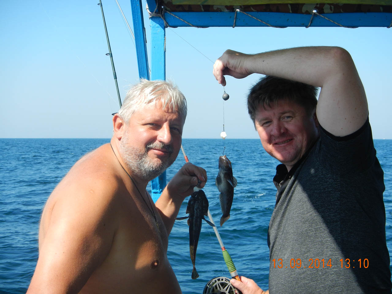 Капитан и его помощники таскали по 3-4 бычка с каждого заброса.