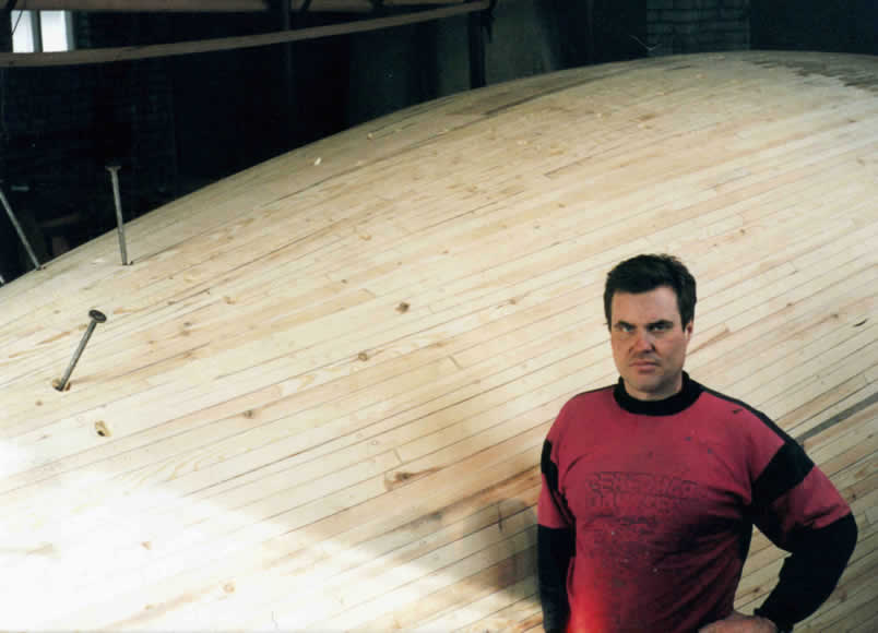 С удовольствием покажу. Я вообще яхты строил. Вот одна из работ, проделанная от проекта, до спуска на воду. Лодка делалась на продажу и не за мои деньги и не мной самим, но под моим чутким руководством. Это моя самая большая лодка - 14 метров. Первая фотка это, собственно, ваш покорный слуга после обшивки корпуса первым слоем. Ну собственно и фото. Сейчас владею более меньшей яхтой, тоже собственной постройки, т. сказать на старость. Кстати, непотопляемой с обеспечением последней делением на отсеки.
