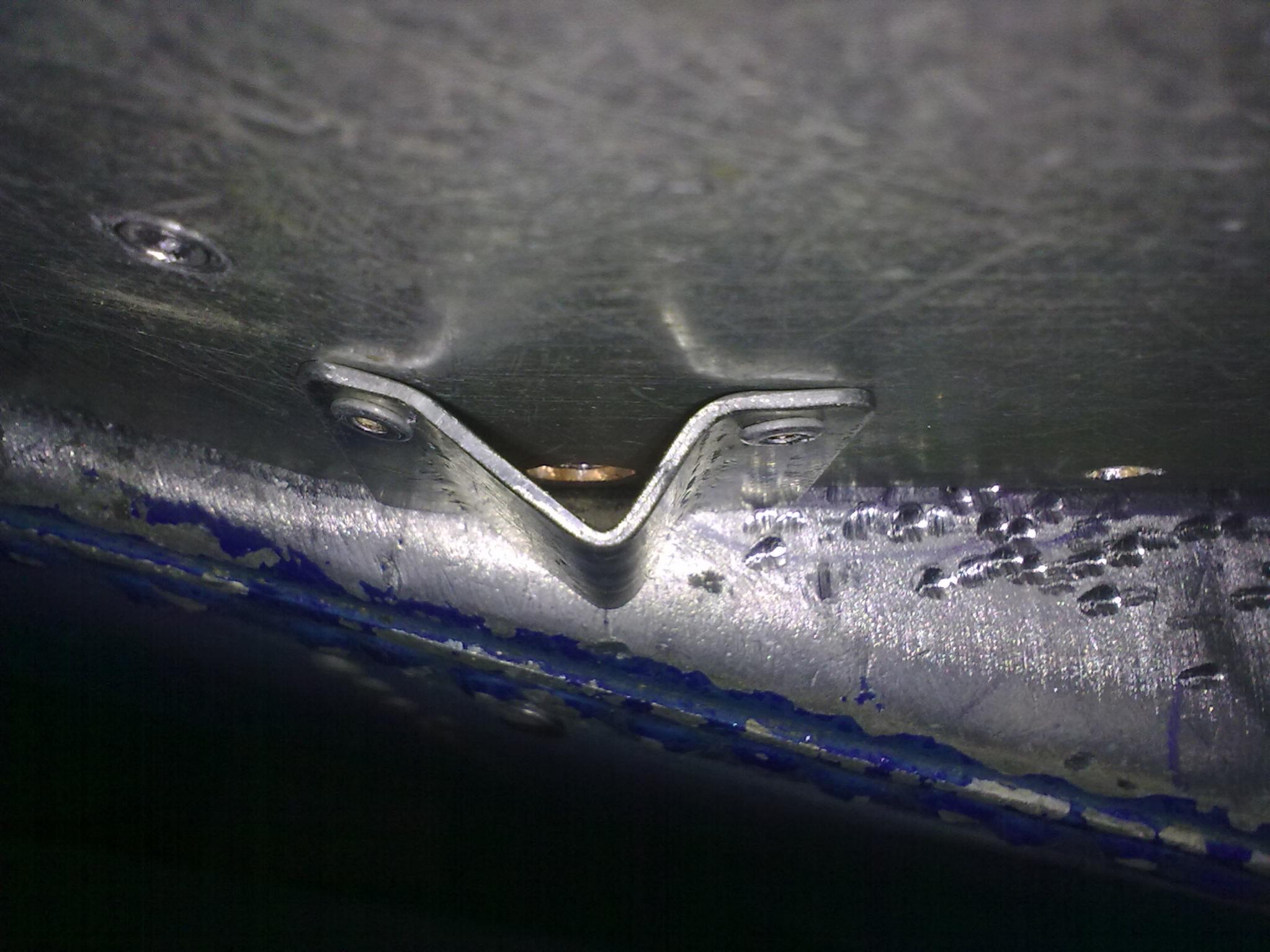 Что касается реданов, то они не смогут повлиять на изменение площади смоченной поверхности подпорной плиты при глиссировании, так как у центральной части низа кронштейна нет никакой килеватости. Срезать центр доски пришлось по двум причинам: необходимость обеспечения доступа Антона к сливной пробке и недопущение глиссирования на центральной части подпорной плиты. Глиссирование на этой «пятке» приводит к дельфинированию или неустойчивости на курсе, правда при полноценной длине выносного транца. Для избежания этих эффектов, обычно, выносной транец задирают вверх, по отношению к плоскости днища, т.е., доска, как правило, значительно уже места крепления всего кронштейна. В данной конструкции обе закошенные, к краям кронштейна, плоскости подпорной плиты – это самоцентрующиеся, как бы разделённые аналоги транцевых плит, находящихся в положении нулевого угла атаки, по отношению к набегающему потоку воды, что явно, будет способствовать облегчению выхода на глиссер, без последующего, излишнего сопротивления при движении. Ну, а косыночкики сверху рецесса, только верхушки мощных косынок из 3-х миллиметрового металла под рецессом, которые пришиты прямо к стрингерам. В данной конструкции, в комплексе всех связей, горизонтально расположенный лист рецесса уже сам по себе является косынкой, рабочее ребро которой обращено к корме, хотя если сейчас, полностью вырубить рецесс, так сказать выдрать его по живому, между новыми элементами усиления, а доску и косынки, в корме, оставить, я смело дам гарантию на установку движка в 140л.с.
