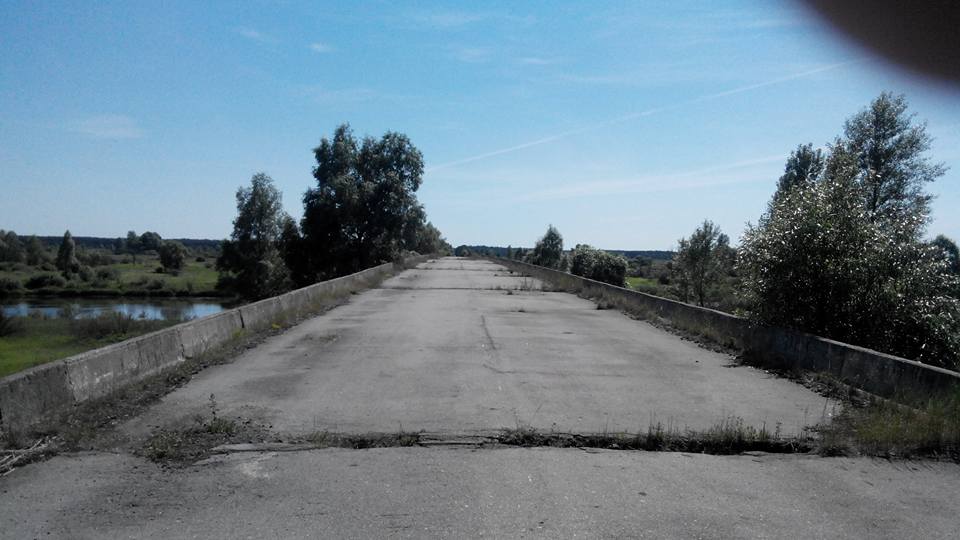 На фото за поваленой металлической фермой начинается зона отчуждения. До Чернобыля 34 км.