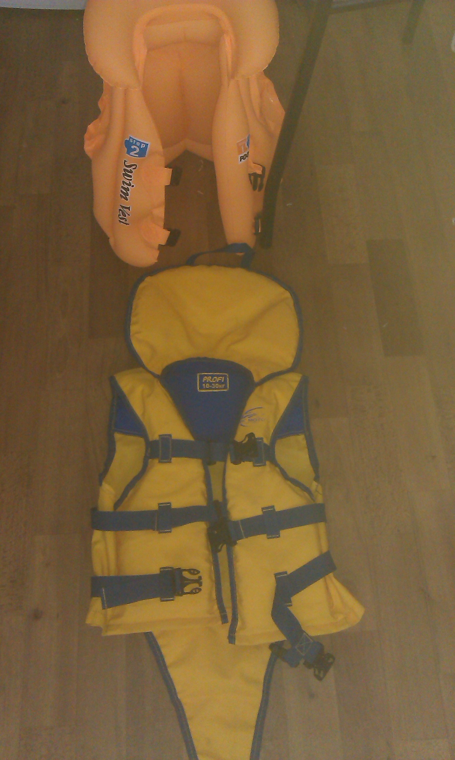 Жилет детский страховочный 10-30 кг желтый. Немного расшитый под руками. так удобней ребёнку. Ещё бы и пользовался , да уже на ребёнка не налазит. Ребёнок весит уже 39 кг и жилет держит классно.