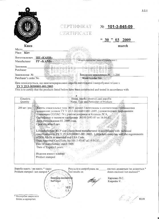 Ребята. Не парьте друг другу мозги. Вот сертификаты, какие должны быть - без вариантов. Плюс на каждый жилет и круг ПАСПОРТ с номером (номера на изделии и паспорте есс-но должны совпадать). Купите один раз правильно и передавайте по наследству.