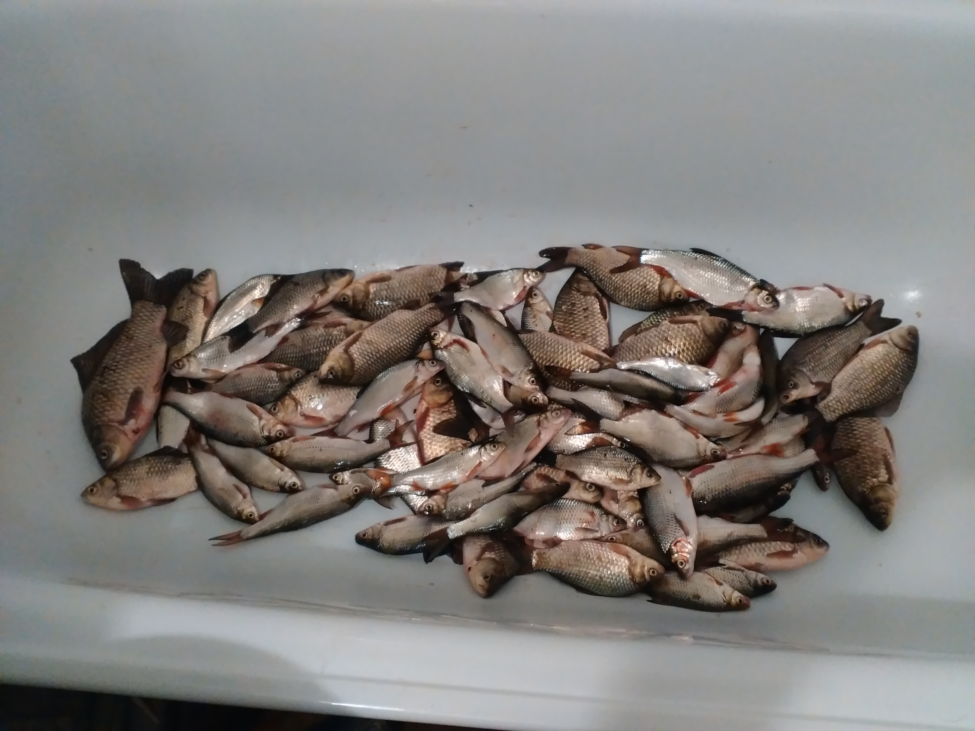 В воскресенье были в Забарино,отловились прилично,карась и тарань.На пятерых пять ведер.