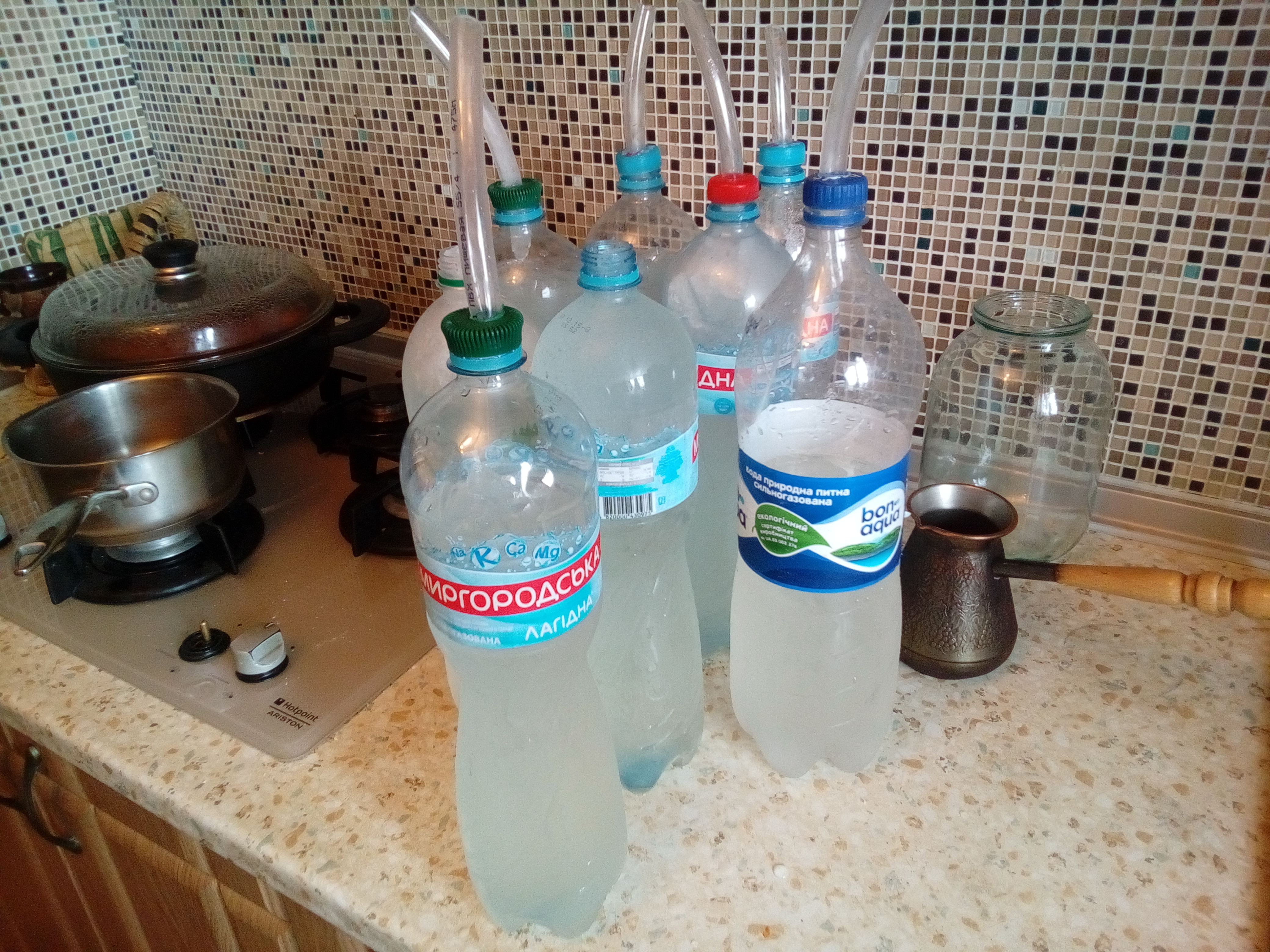 Вчера на ночь поставил в лесу бутылочки для сока, а сегодня с утра съездил собрать. Сок весь замороженный!