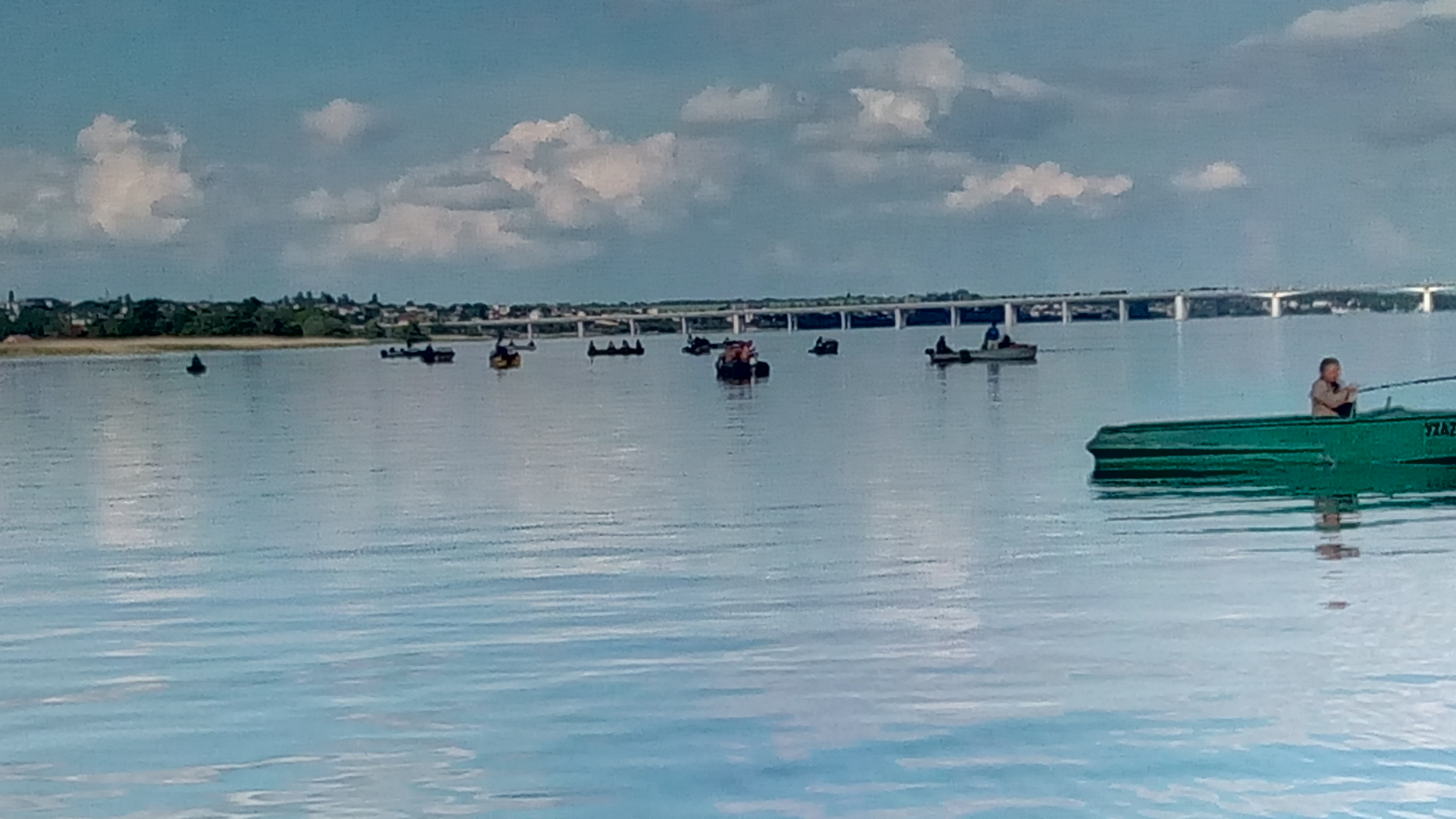 Вчера посмотрел прогноз и решил сделать выходной, тем более есть повод, и не прогадал. И таки да, пузанок есть. В 12,30 стали на якорь, первый заброс, и что у меня , что у супруги сразу взяли по первому. Начали соревноваться, но после первого десятка сбились со счета. После 15-00 клев практически прекратился, пару штук взяли и те мелкие. Но после 16-ти клев стал стабильным и иногда цеплялись по две штуки, а после приезда Влада222, моя половинка и 3 штуки подняла за раз (рисанулась - ВО КАК НАДО ) Стояли до 17-30, результат около 5 кг на двоих.