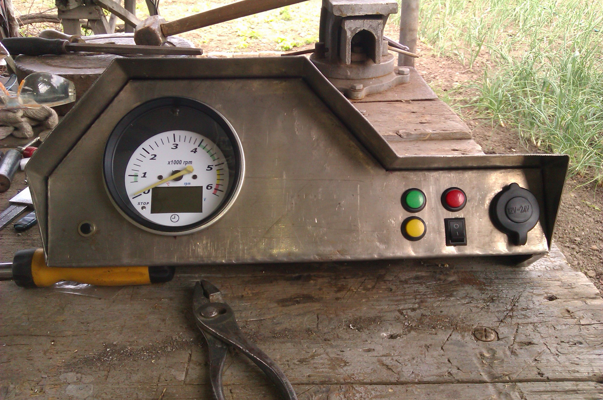 Всем доброго времени суток) вставлю и я своих пять копеек))) вот сделал на свой Днепр приборную панель. пока только тахометр от Михаила, но в будущем планирую врезать еще датчик топлива и часы (думаю поставить шестерочные)