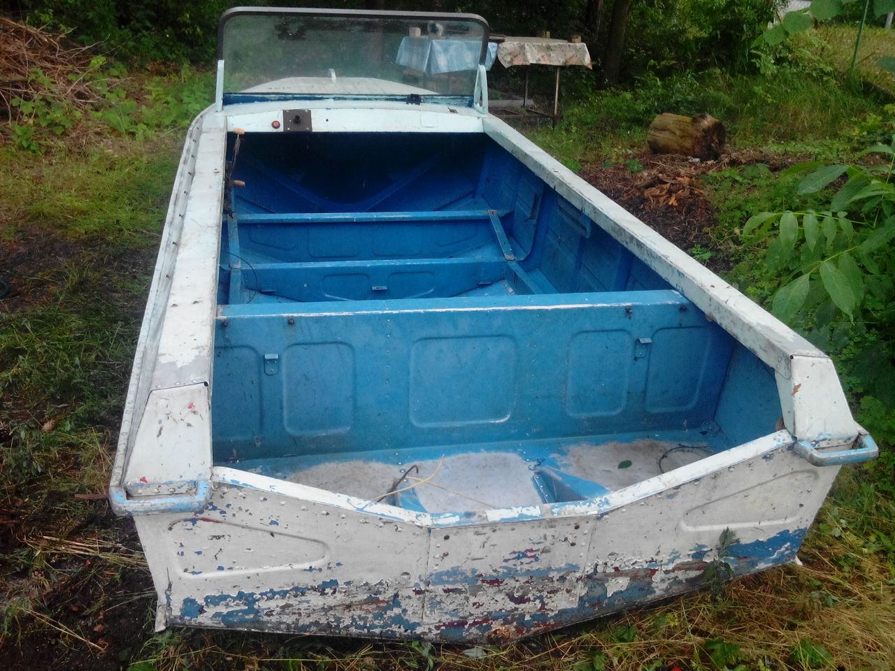 Есть отверстие маленькое под одну заклепку(ветка упала) и немного согнута скула, все это выше ватерлинии.