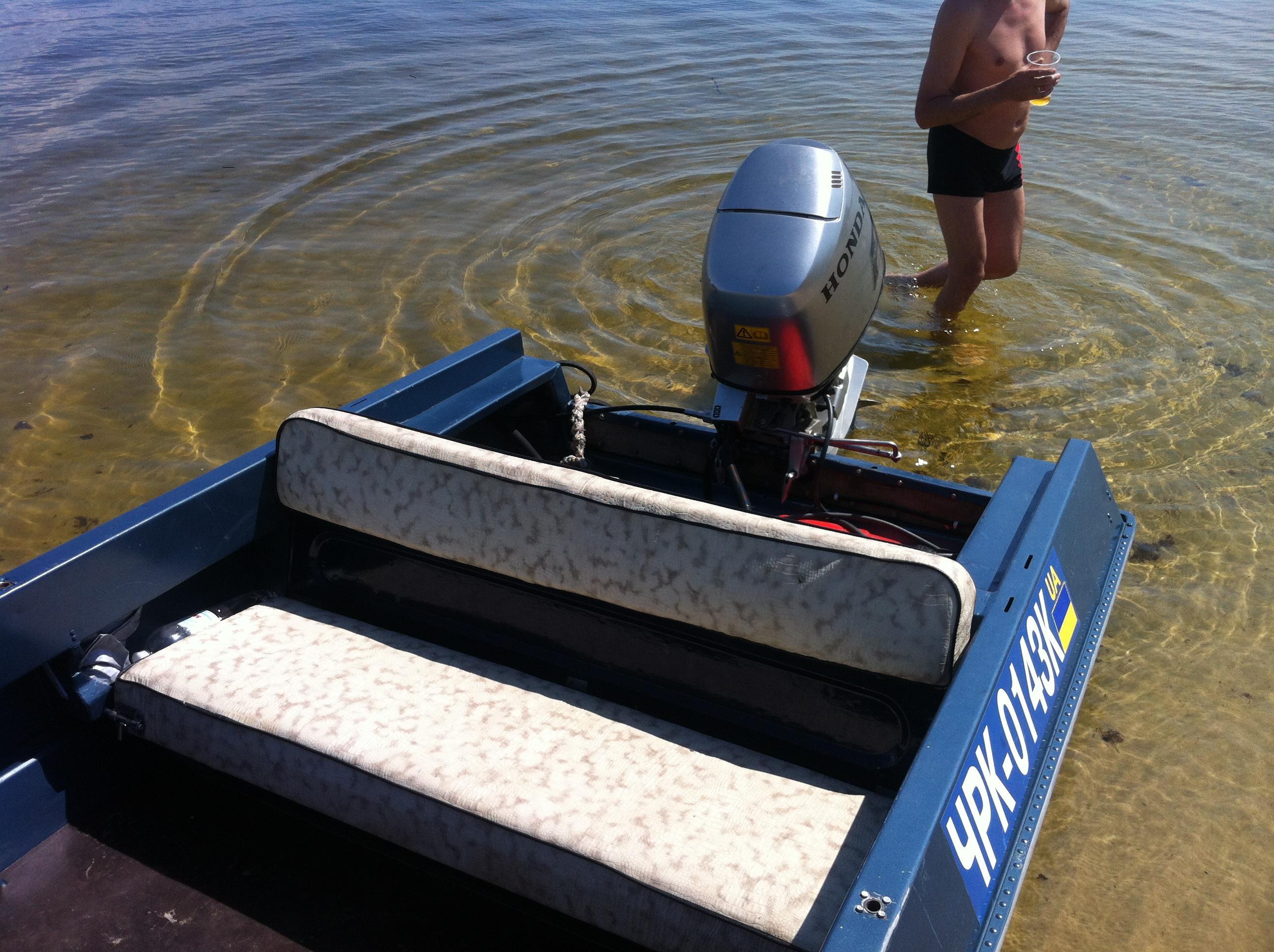 Установлены ходовые огни.гнездо под зарядку. музыка. подсветка спереди и сзади.помпа.отключатель массы. также есть старый штатный тент, аллюминевая накидка на всю лодку. мотор honda 30 без ел. трима, не большой накат, мотор в идеальном состоянии, работает как часы, скорость на 13 винте 50км\\час, на грузовом 9шаг 38км\\час, оба винта в комплекте с лодкой. Добротный лафет с документами (можна и катер тягать), Сама лодка без дефектов, кузов без латок, транец идеальный, есть мелкие царапины. Цена 4050$ торг.