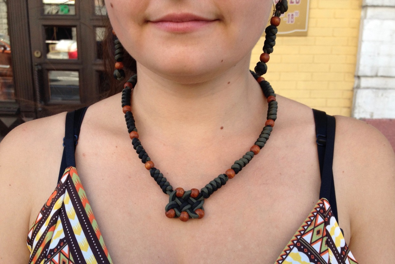Хорошим своим знакомым сделал отличный семейный набор для рыбалок, походов и прочего в стиле камуфляж. Теперь супруга моего приятеля даже будучи с мужем на рыбалке будет вся в украшениях, но не портя общую камуфляжную окраску