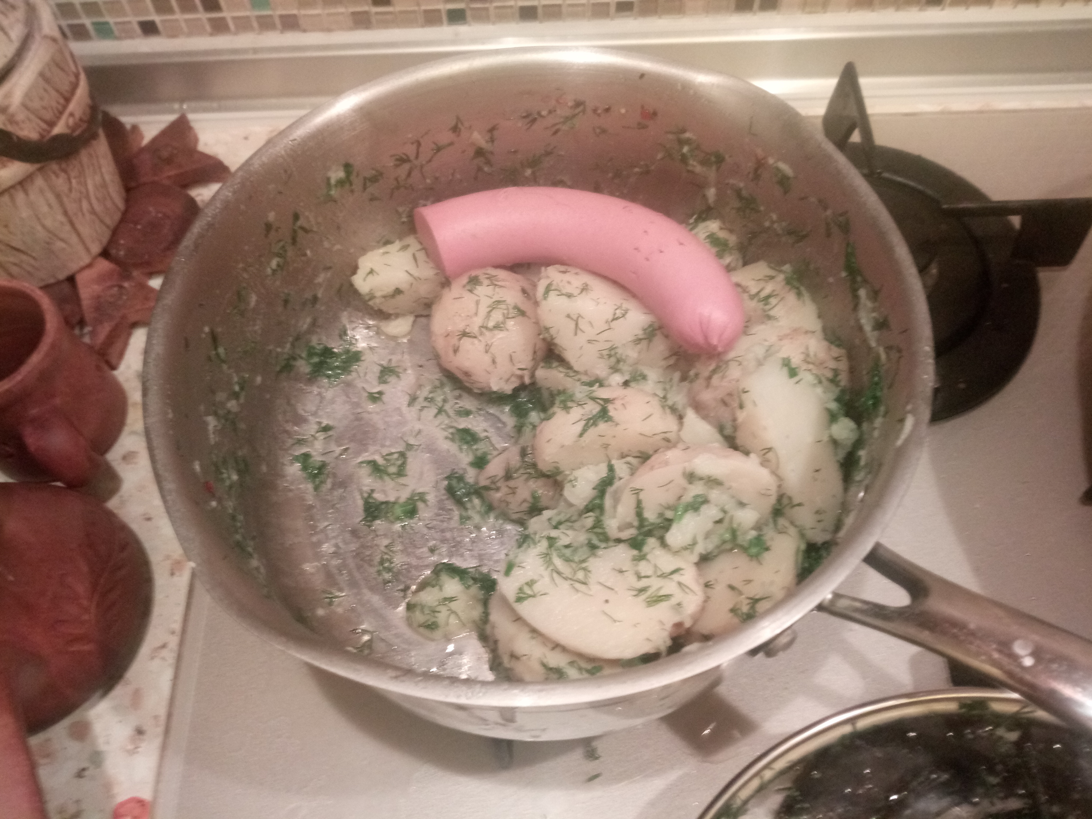 Красота! Снег за окном, а у меня на ужин - картошечка, сосисочки и маринованные грибочки!
