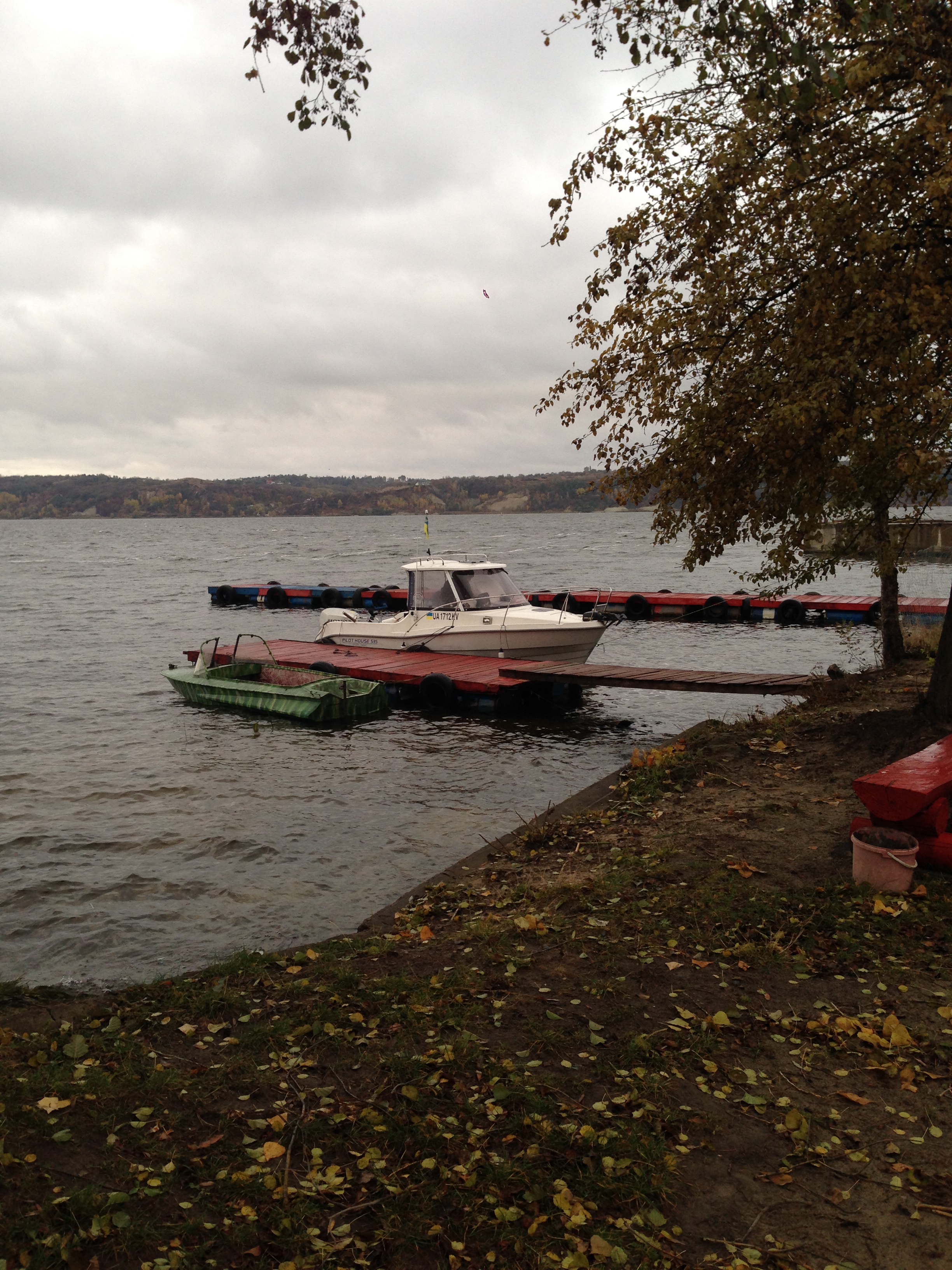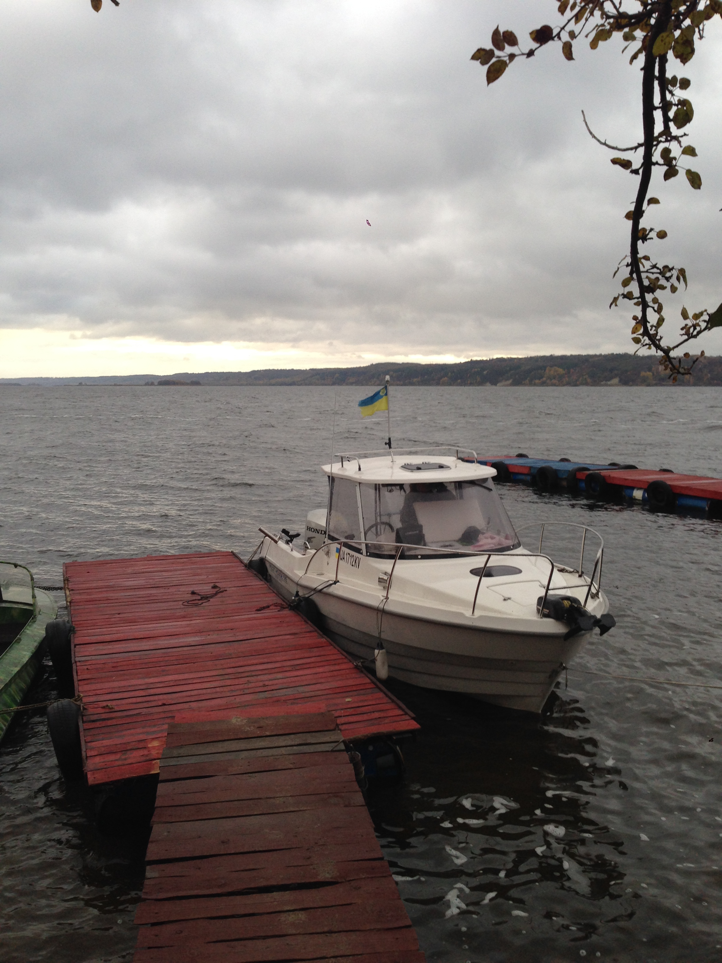 Вышли с 1-го РОПа в 9.05 погода была более или менее сносной, очень надеялся , что предшествующие рыбалке четверг и пятница растянутся на субботу и воскресенье. Но не тут - то было, первую половина дня мы потратили на поиски «рыбов» между 4 и 5 шлюзами. Сын отметился , взяв троллем на Рапалу перч 6 небольшую щучку весом 1,350 гр. Дальше мы пошли по намеченному плану, спустились до Украинки с визитом на базу «Святовит», но только мы подошли к Украинке нас встретил сильный порывистый ветер. Не могу сказать, что волна была 1.5 метра, но белые гребни указывали на то, что волна была в пределах 1метра. Особо я не переживал , так как знаю свой Пилот Хаус в различных экстремальных ситуациях на КВХ. Но мои парни, не показывая страха, поддержали меня в правильности нашего выбора идти только вперед….